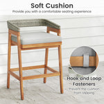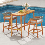 The acacia wood frame of the whole set prevents cracking and splinters, and the reinforced H-shaped structure of the bar table ensures high stability and strong support. Moreover, the breathable PE wicker backrests and sponge-filled cushions ensure comfort for hours. Tailored for various outdoor settings such as poolside areas or balconies, this counter-height set introduces sophisticated functionality to any space. The spacious 54” x 22” slatted tabletop is perfect for hosting drinks, snacks, and decorative items.