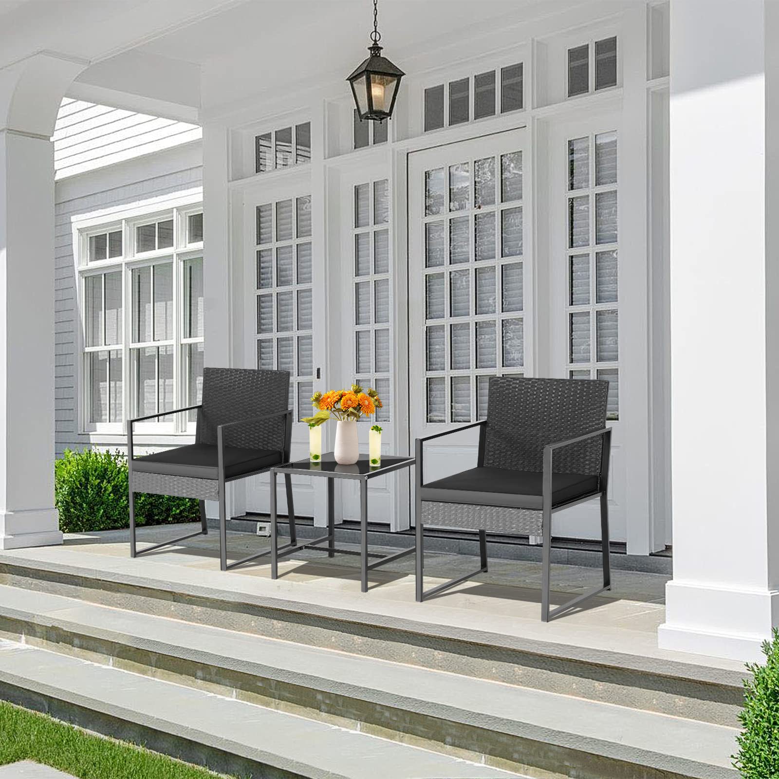 - Various Suitable Occasions: This 3-piece patio rattan chair set with an appealing appearance and much comfort suits multiple places well. And the anti-slip footpads protect the ground from scratches. It will be a perfect addition to a backyard, poolside, balcony, front porch, and so on.
