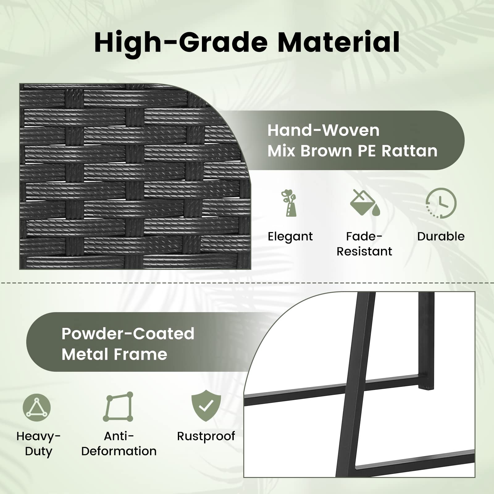 - Sturdy Metal & Durable Rattan: All the 3 pieces are supported by a powder-coated metal frame, which is heavy-duty, anti-deformation, and rustproof. The reinforced X-shaped structure highly strengthens the chairs, enabling each of them to withstand 400 lbs. Plus, the hand-woven PE rattan is elegant, fade-resistant, and durable, ensuring prolonged service life.