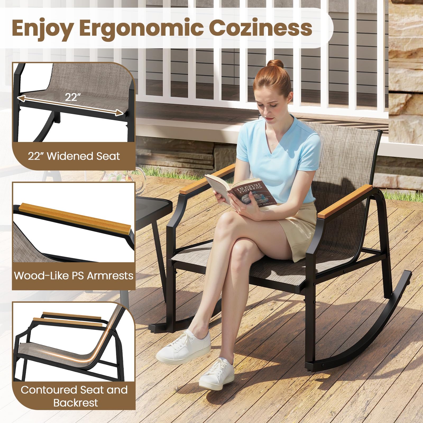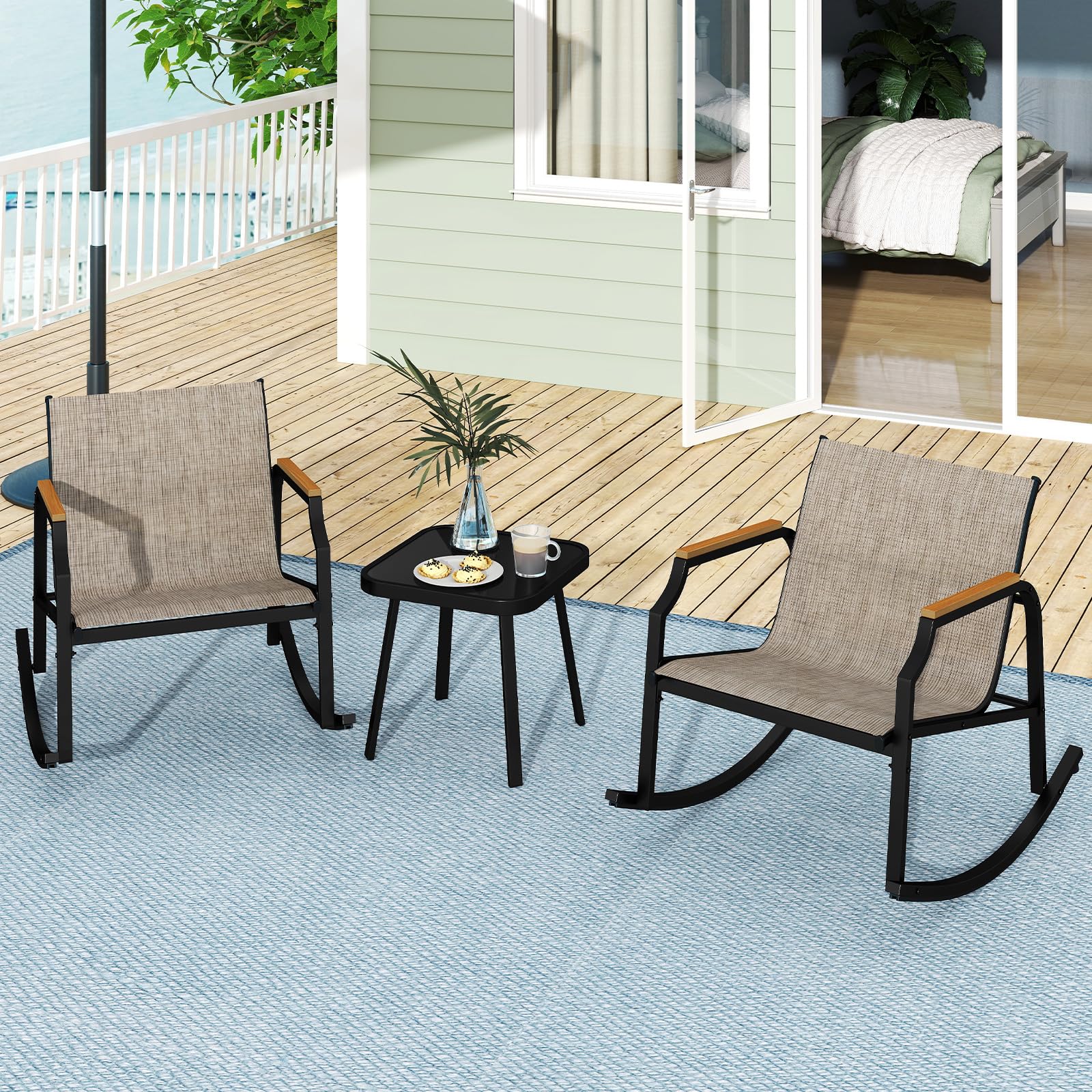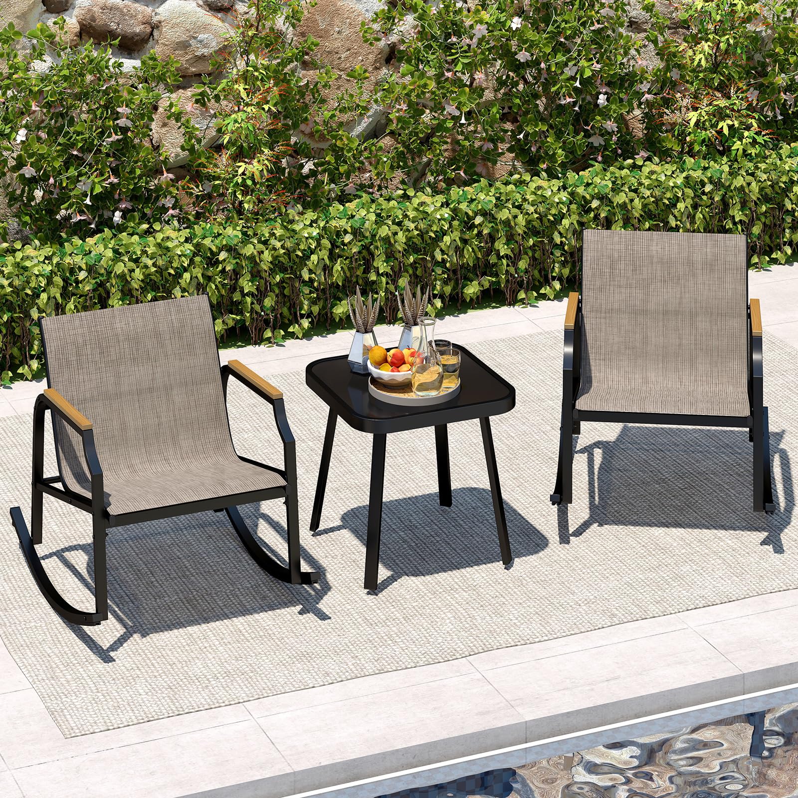 Embrace a perfect blend of comfort and style with this 3-piece patio rocking bistro set.