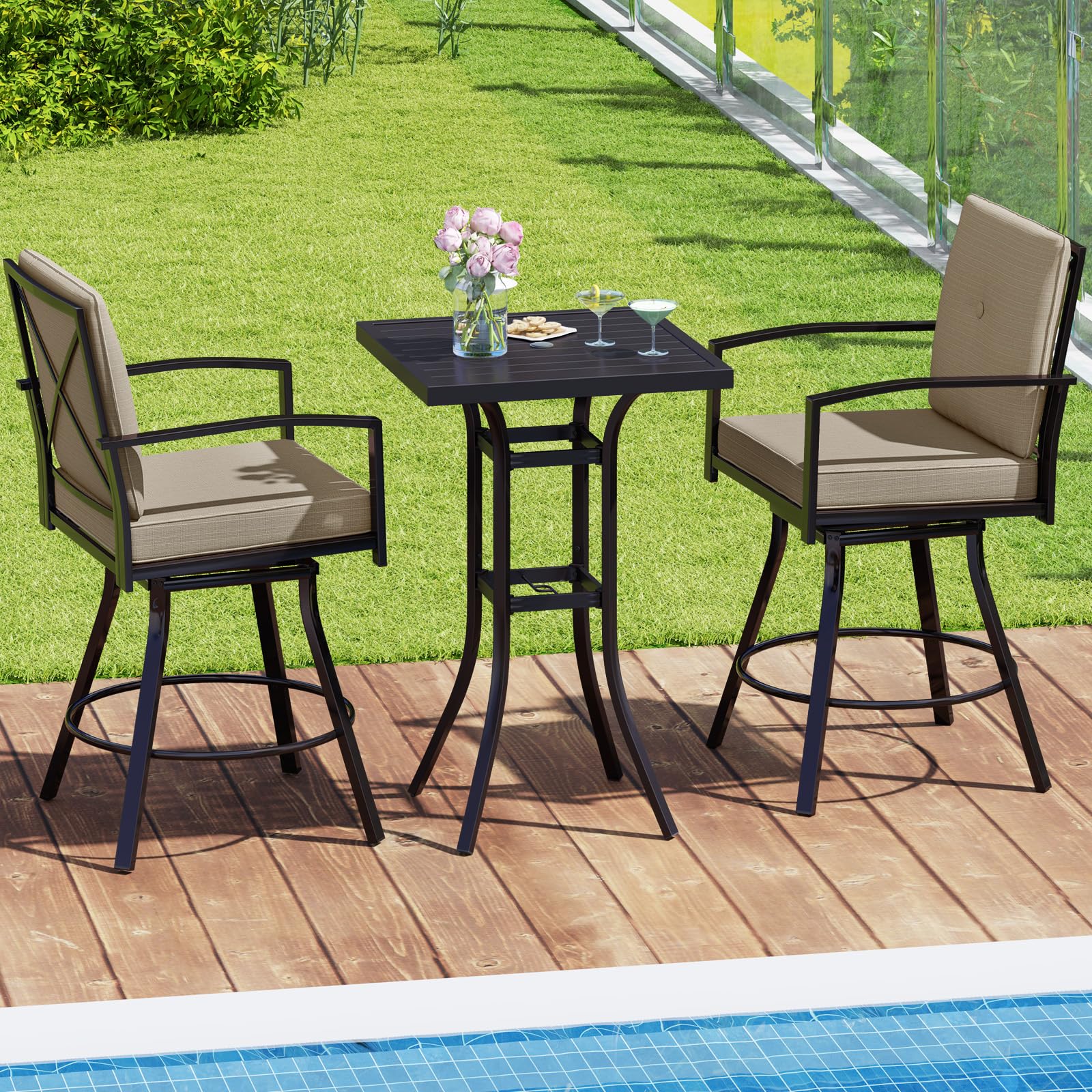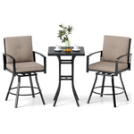 - Soft Padded Cushions: Featuring thick cushions, this patio swivel bar set brings a soft and supportive embrace, making long conversations and gatherings more enjoyable. Plus, the hook and loop fasteners secure these cushions in place.