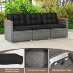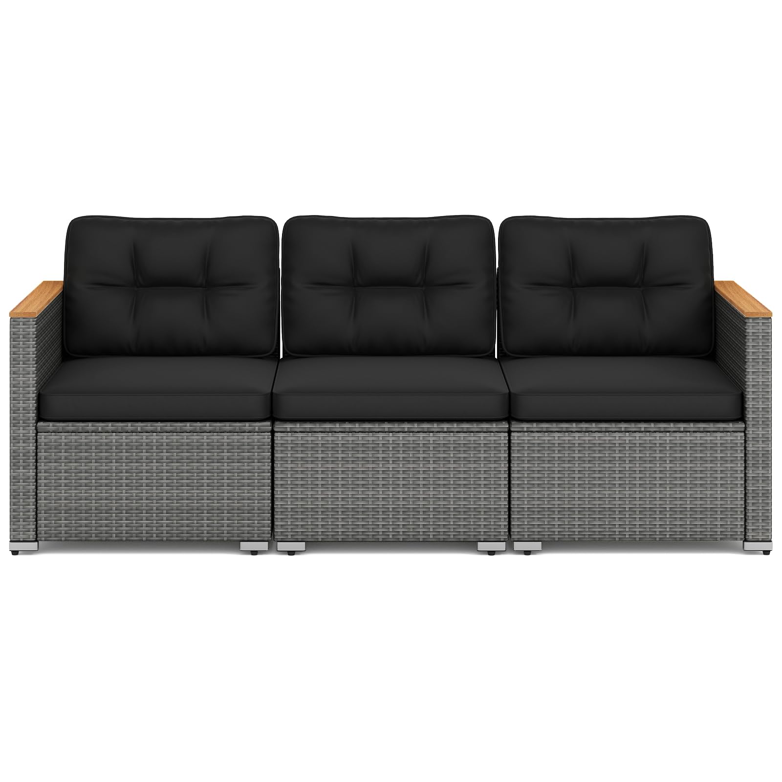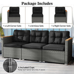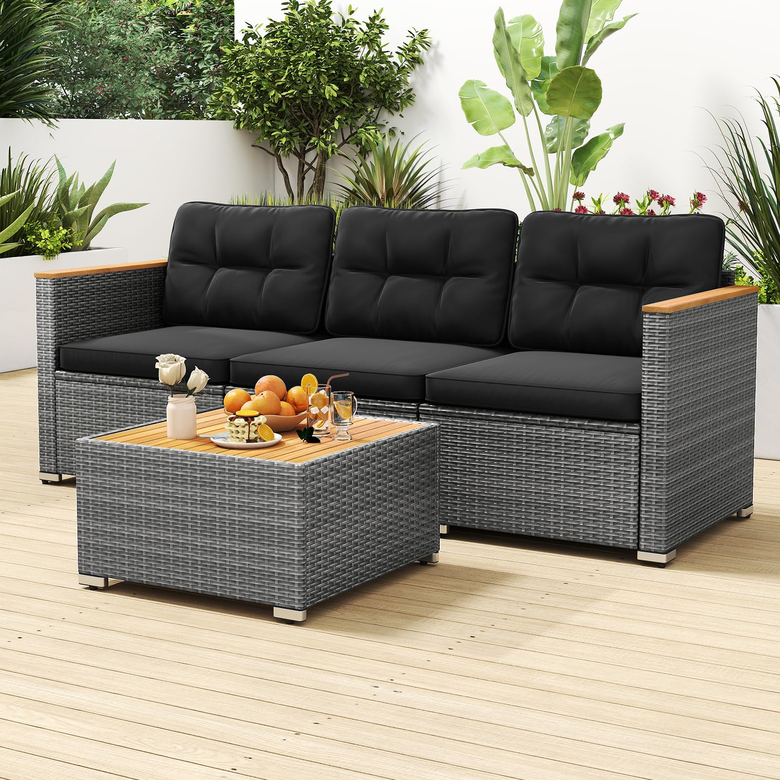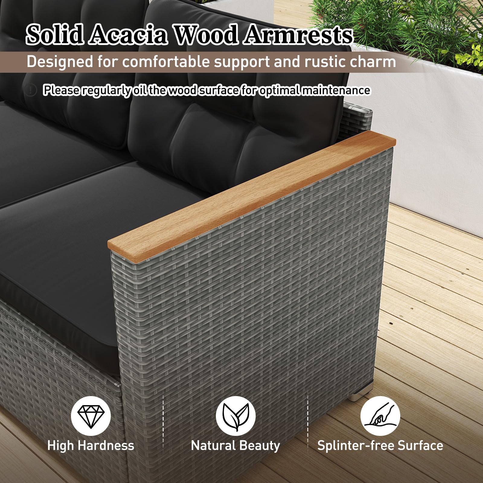 Its solid acacia wood armrests enhance natural beauty and ergonomic support, harmoniously blending with the hand-woven PE rattan that is both fade-resistant and sun-protected, ensuring longevity and aesthetic appeal. Additionally, the robust metal frame of this rattan patio furniture set supports up to 400 lbs per seat, ensuring stability for a variety of social settings. Furthermore, the inclusion of 4 clips allows for versatile arrangement options, fitting seamlessly into your patio, deck or backyard design.