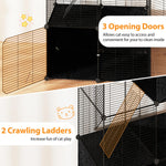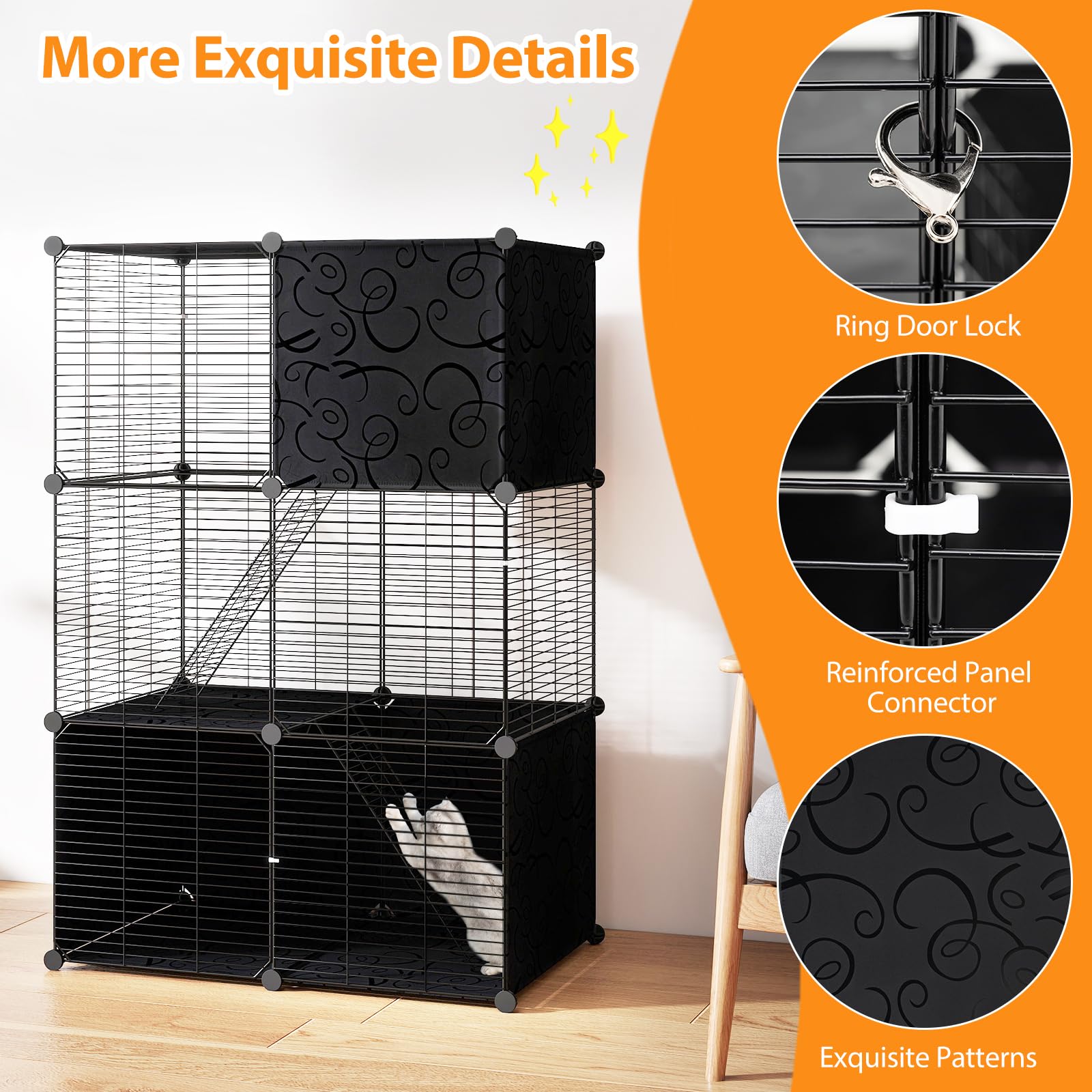 The cage features 3 levels designed to meet different needs: the top tier for cozy resting, the middle tier for playful activities, and the bottom tier for convenient feeding. Suitable not only for cats but also for other small animals like ferrets, rabbits, dogs, and squirrels, it provides a safe and controlled environment for climbing, exploring, and resting. Made from reliable PP and powder-coated metal pipes, the cage is stable and safe, with an anti-tipping device to prevent accidents. It includes 3 opening doors for easy access and cleaning, and 2 crawling ladders to enhance playtime.