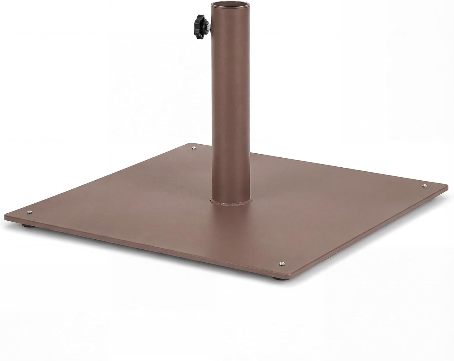 Patio umbrella base with perfect compatibility! Our 20" x 20" steel base comes with 4 non-slip pads to keep the patio umbrella stable on uneven grounds. And it weighs up to 35 LBS for higher stability. It is constructed of powder-coated steel, which is waterproof, rust-proof, and anti-fading. Hence, the stains on the surface can be easily removed with a cloth. The package comes with 2 adapters of different diameters, allowing umbrella poles from 1.6 "to 1.9" in diameter to be inserted into the umbrella base. Tighten the knob on the steel tube, and you can secure the umbrella within the range to the base without shaking. Designed in elegant style, it can perfectly decorate your leisure space with your patio umbrella.