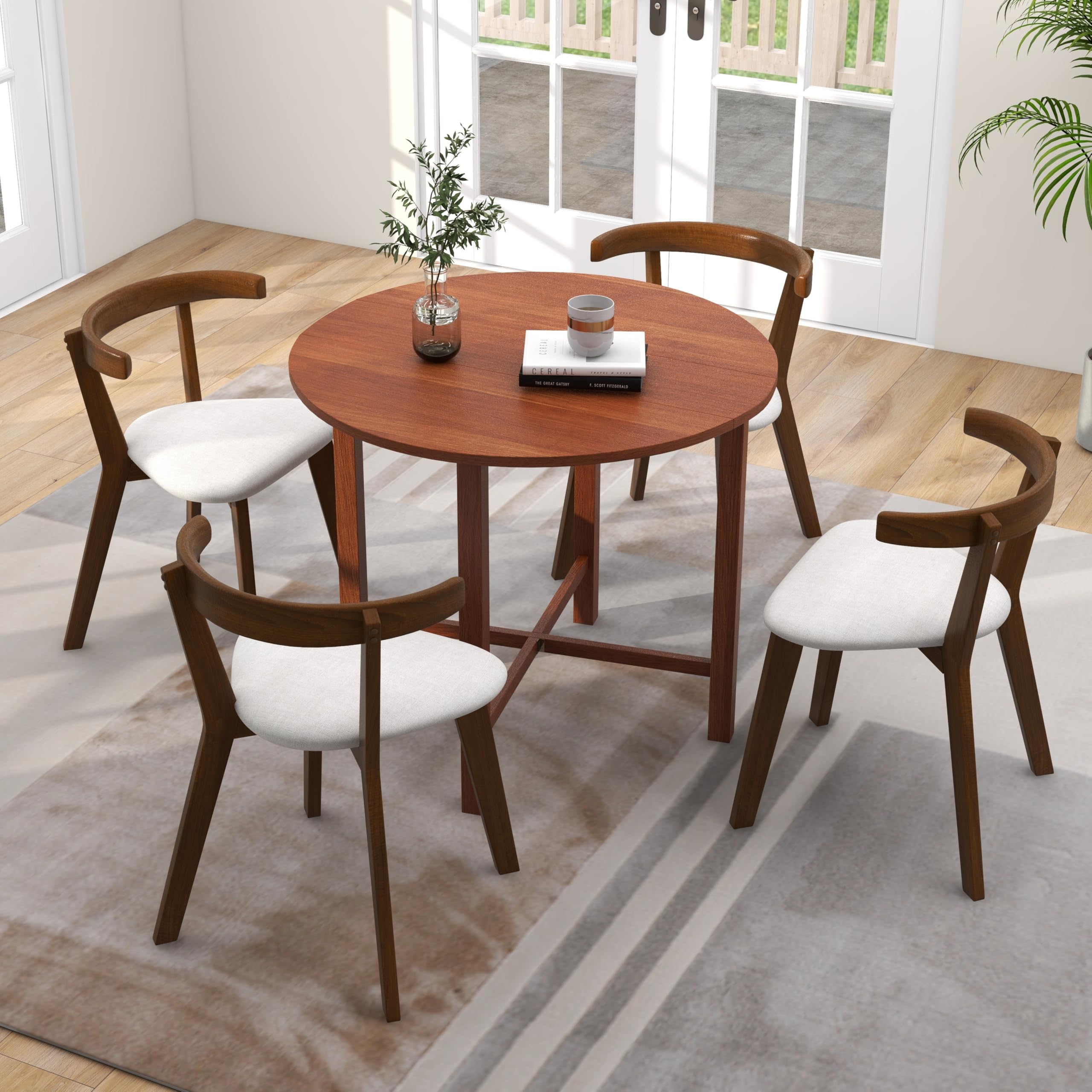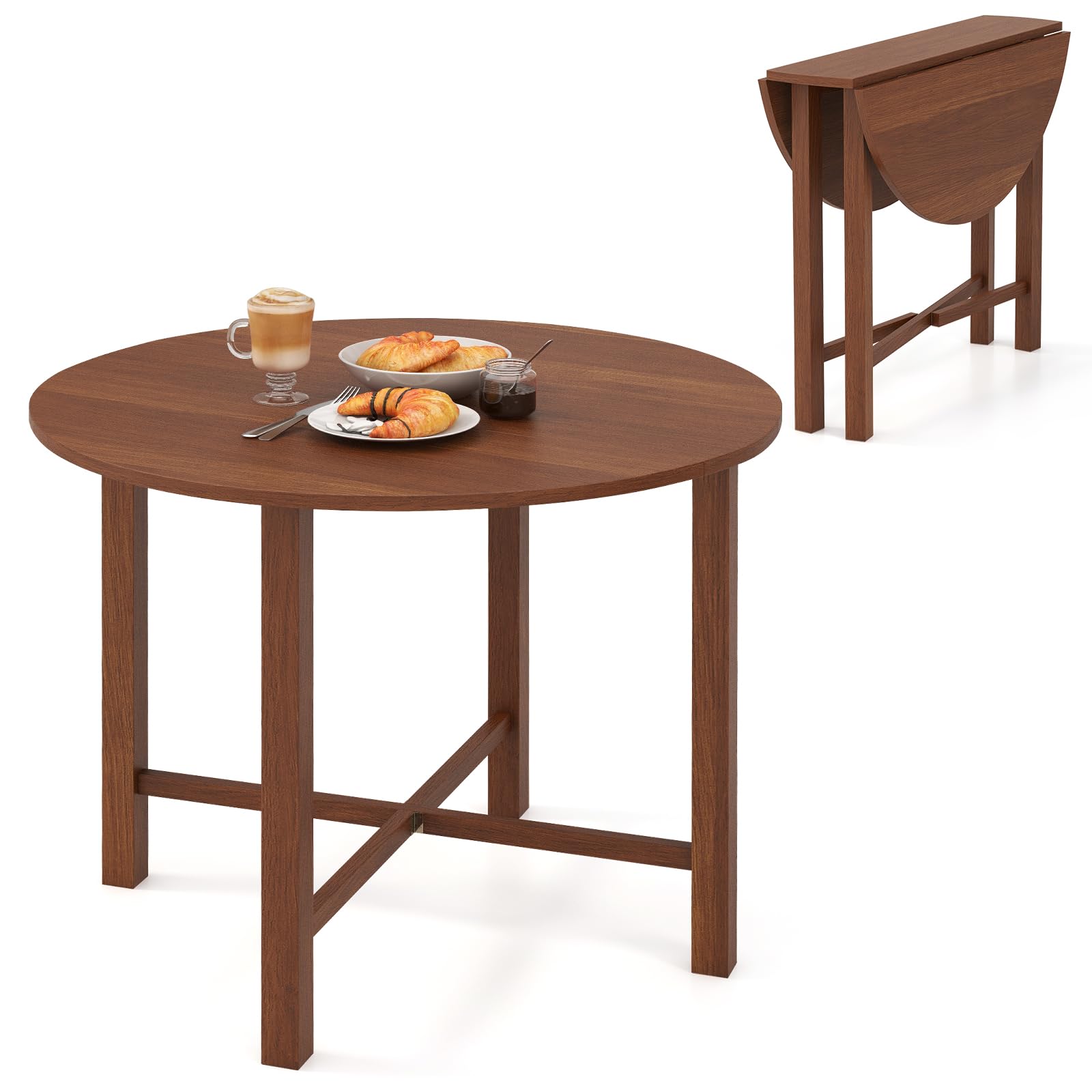 Are you looking for a versatile and stylish dining table that can adapt to your space and needs? Our farmhouse dining table is the perfect solution. With a wide round tabletop, it provides a generous surface for meals, work, or decorative displays. The quick folding design allows for effortless storage or conversion into a console table, making it ideal for small spaces. Its rustic walnut finish and natural charm make it a welcome addition to any living room, dining room, or restaurant. Besides, this folable table features solid rubber wood legs and an X-shaped reinforcement, ensuring durability and stability, with adjustable foot pads for added security on uneven floors. Moreover, assembly is a snap with pre-assembled components, and it offer comfortable seating for 2-4 people. Elevate your dining experience with our elegant and functional dining table!