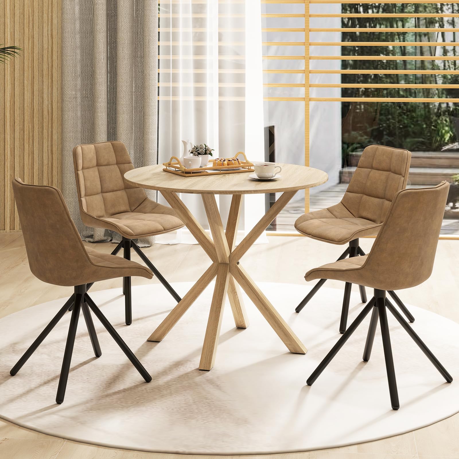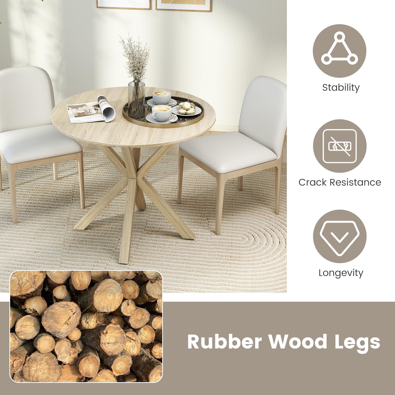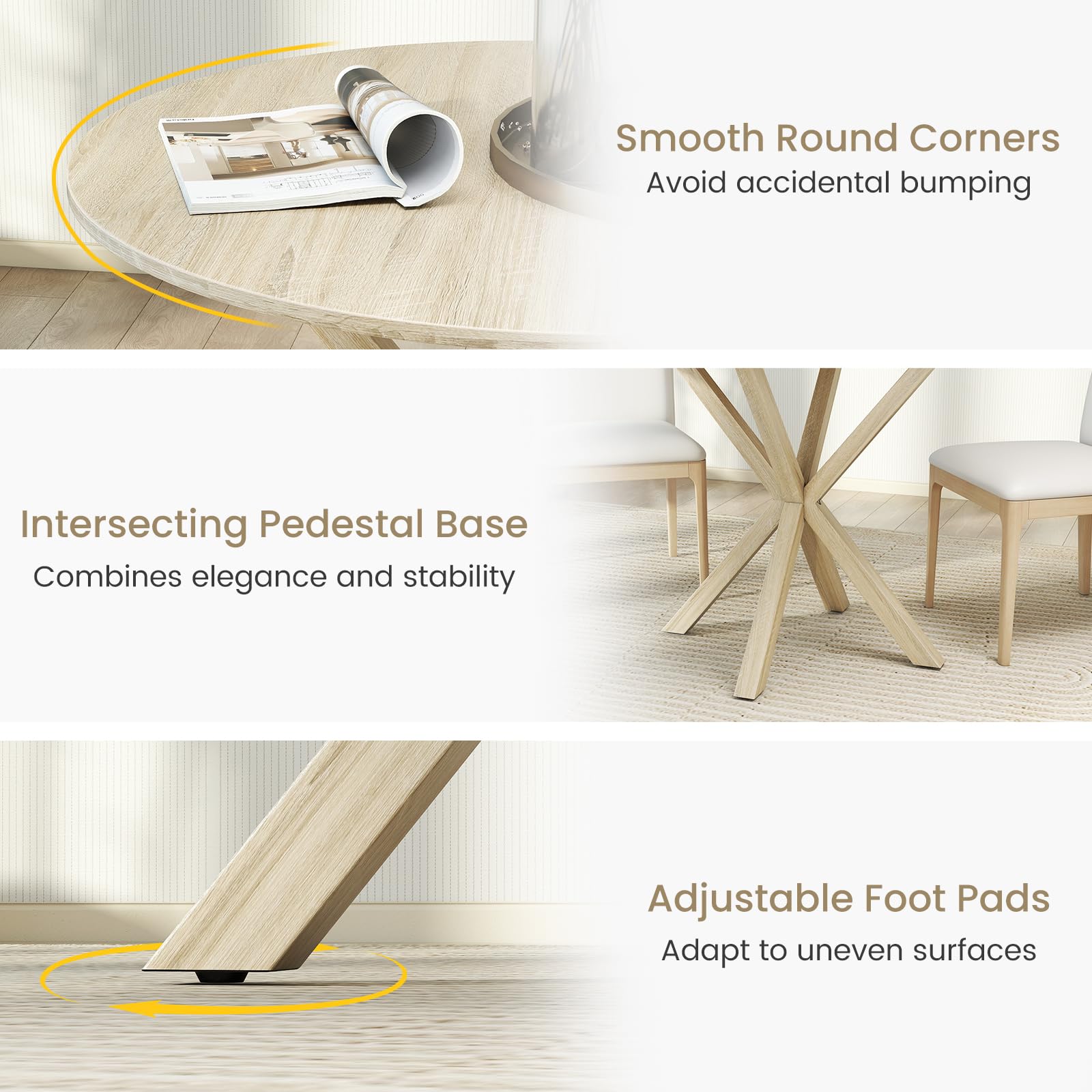 This round dining table adds a perfect addition to your home! This dining table comes with a large round tabletop, which is designed for several people to sit together without occupying much space. Besides, the top is well made of premium MDF with natural wood grain finish, showing its antique and retro style. Crafted by solid rubber wood, the angled X shaped legs are sturdy and durable, stably supporting the heavy load capacity of 264 lbs. The adjustable foot pads are designed for keeping steady on uneven floor. Except for being used as a dining table in home, this classic round table is also quite suitable for office for afternoon tea and even works well in commercial premises like restaurant, coffee shop, bar and so on.