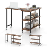 This 360°free rotating sofa side table is a great way to transform your home, which is easy to change the shapes to meet your different needs. As you can see, the mobile laptop table features wide desktop to keep daily supplies you need within reach and 2-tier shelves to enlarge sorted space. For convenient use, the sofa side table is equipped with 6 lockable casters for easy movement and added stability. Not only a sofa side table, but also can be used as an end table, conversation set, computer desk, or bedside table in your home and office.