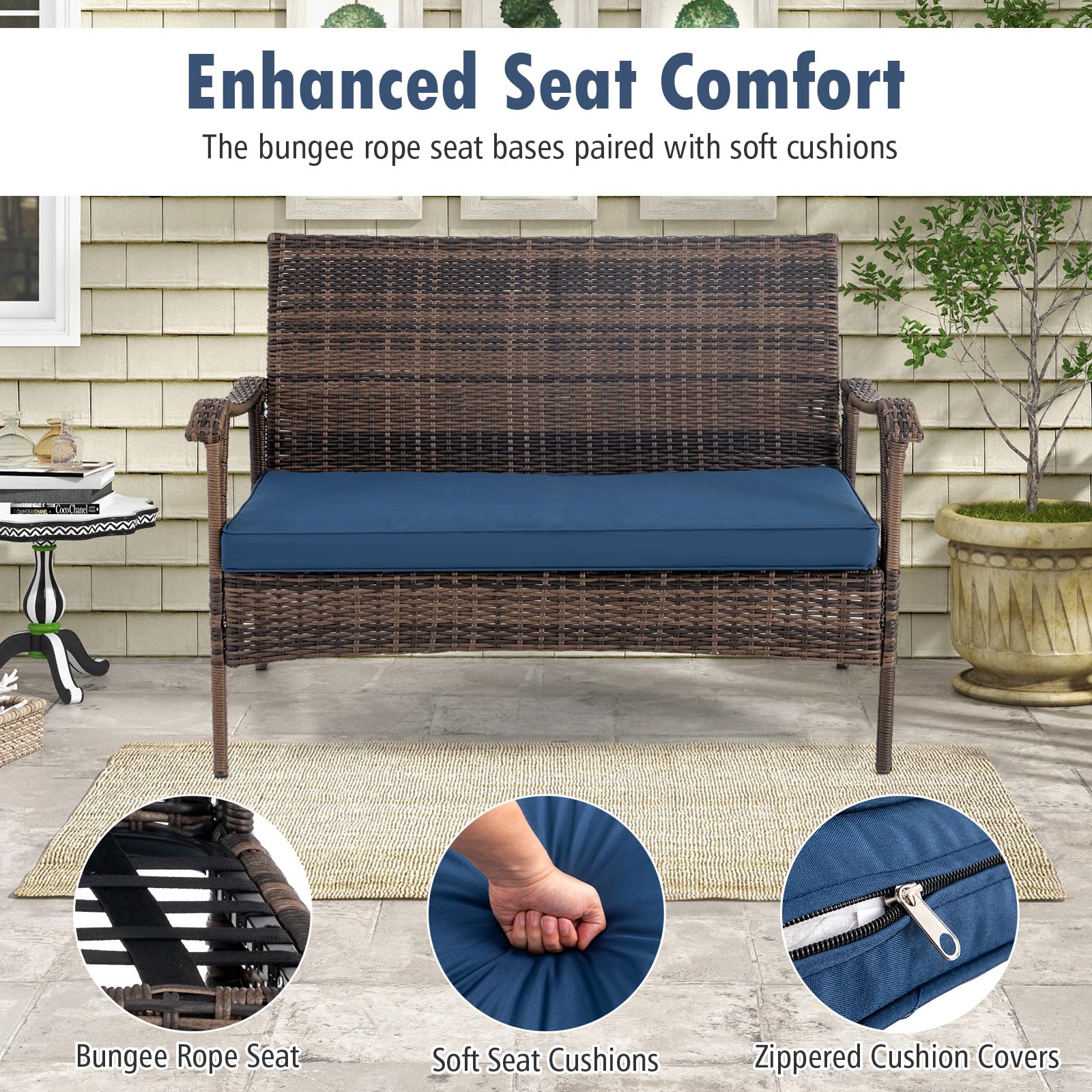 - Enhanced Seat Comfort: The rocking chairs and loveseat feature a unique bungee rope seat for superior elasticity, complemented by soft seat cushions for more coziness. The zippered cushion covers are designed for simple cleaning and upkeep.