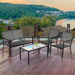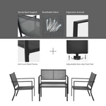 Your outdoor time will be comfy and pleasant along with this 4 piece of patio furniture set! Your comfort is important to us. Hence, the slightly curved backrests, ergonomic armrests, large seats, and breathable fabric make this outdoor conversation set cozy. The durability and stability are also significant. Starting from this point, the anti-rust steel frame and fast-drying fabric achieve this wonderful garden bistro set, ensuring long outdoor service time.