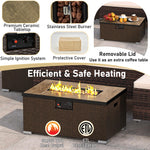 - 2-in-1 Fire Pit Table: The centerpiece of this set is the ETL-certified fire pit, which offers dual functionality. Enjoy the warmth and ambiance of a fire pit with an impressive 40,000 BTU heat output and a simple ignition system, or use it as an extra coffee table with a removable lid. The included fire pit protective cover ensures it stays in pristine condition.