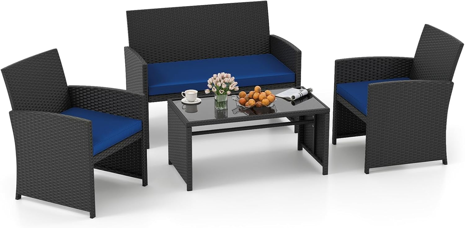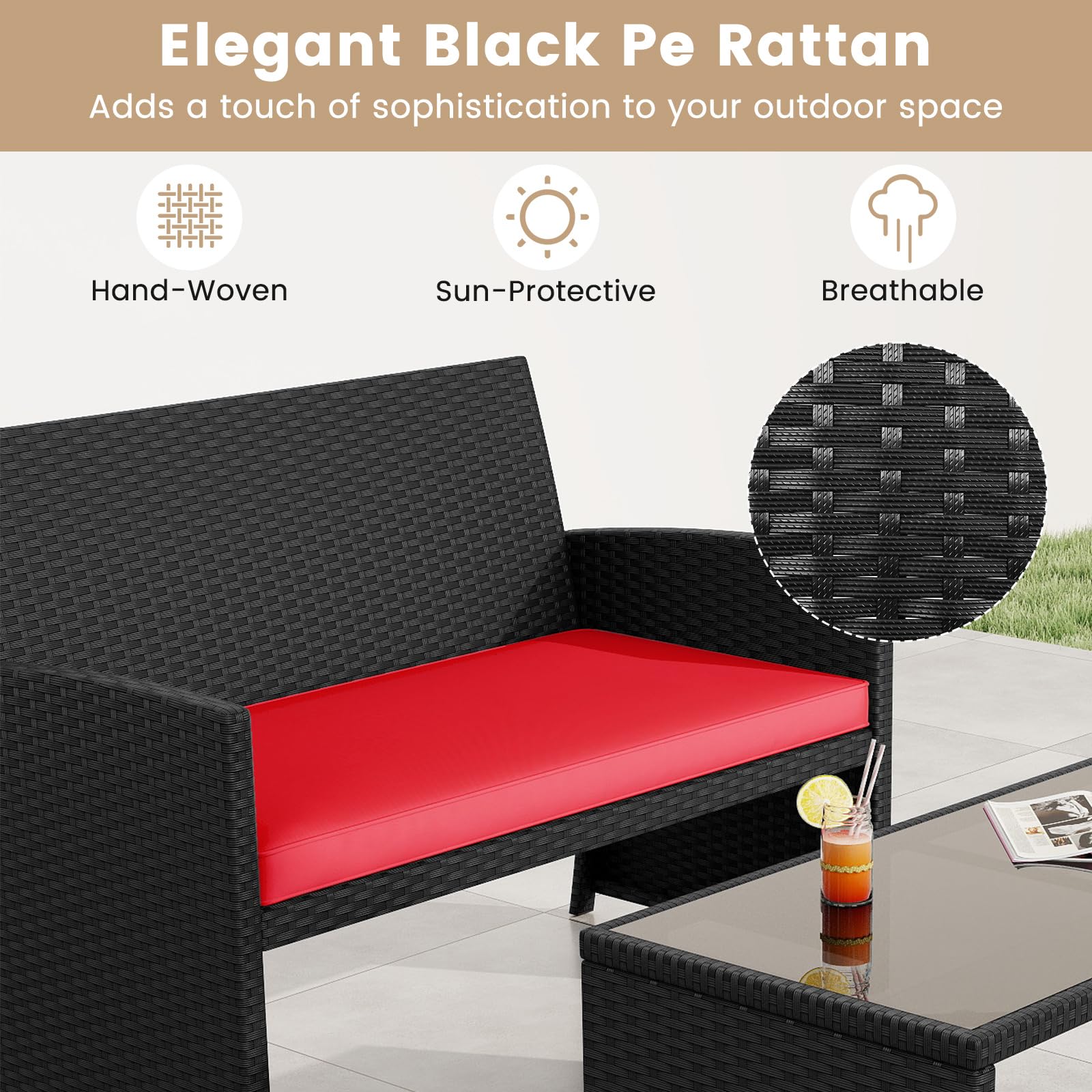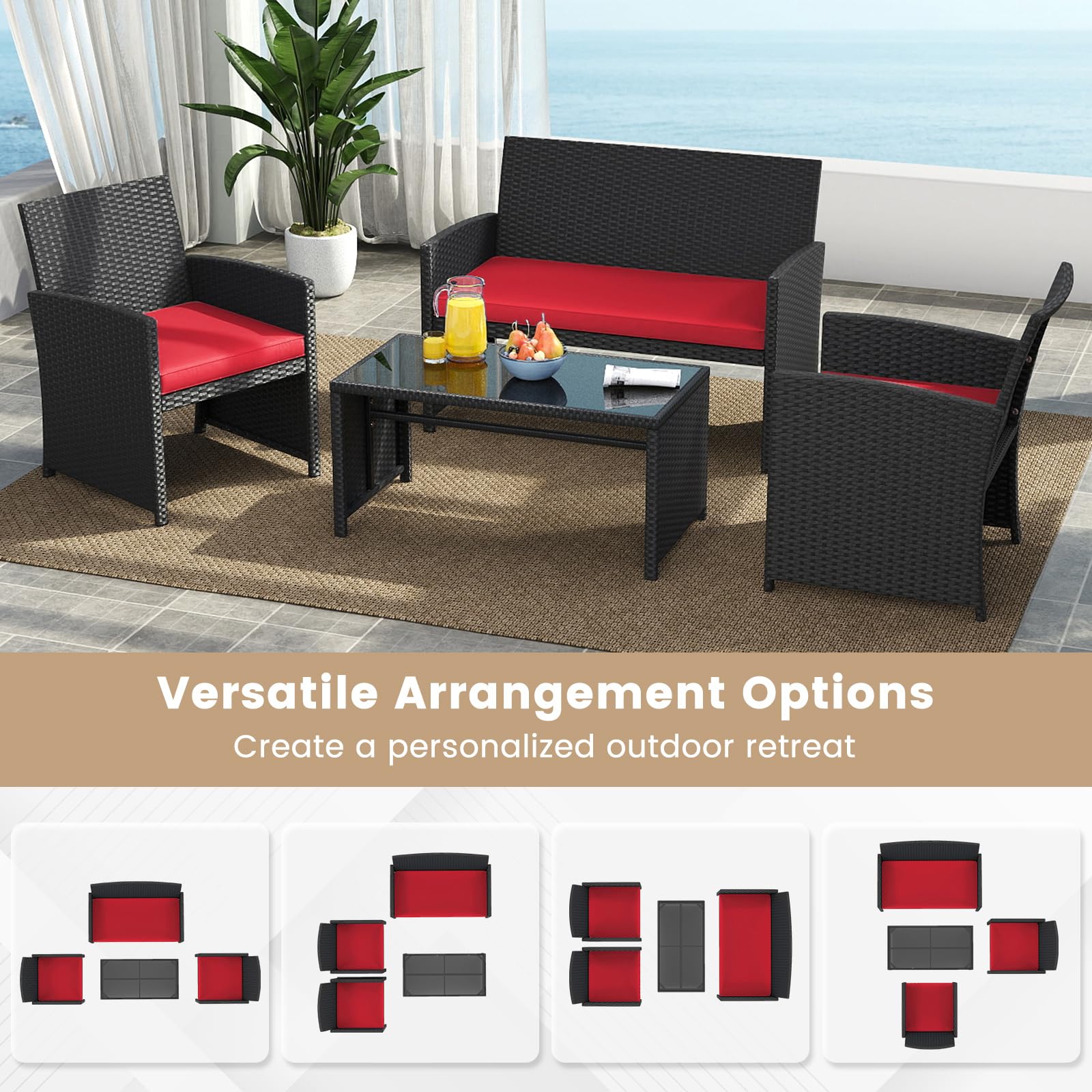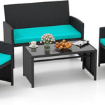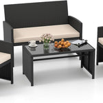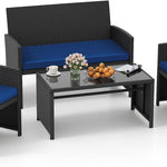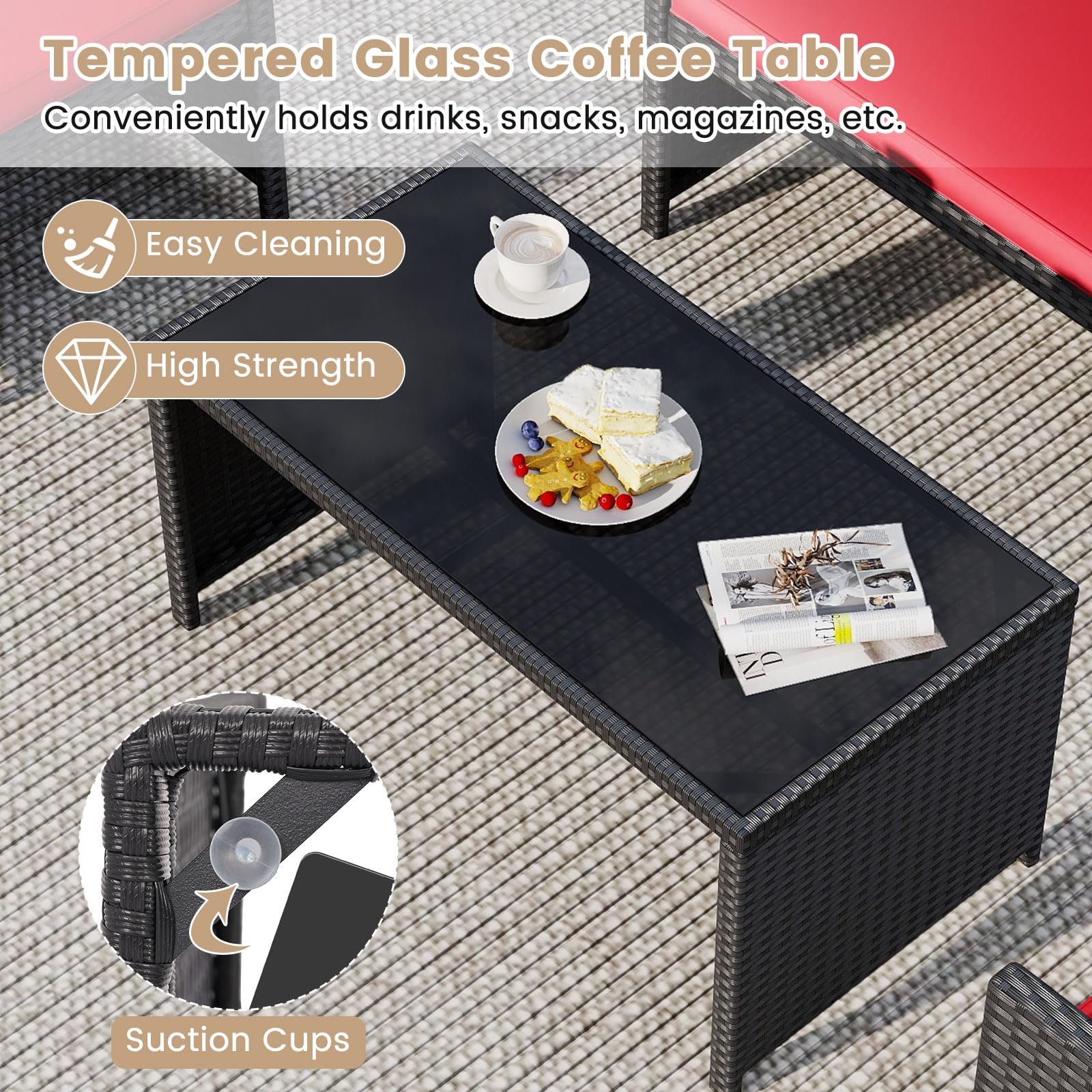 Material: PE Rattan, Tempered Glass, Metal, Polyester, Sponge
