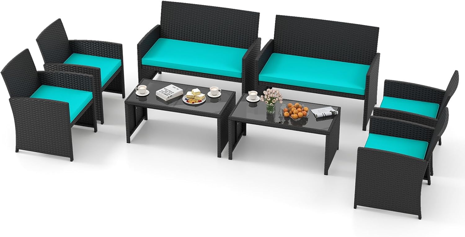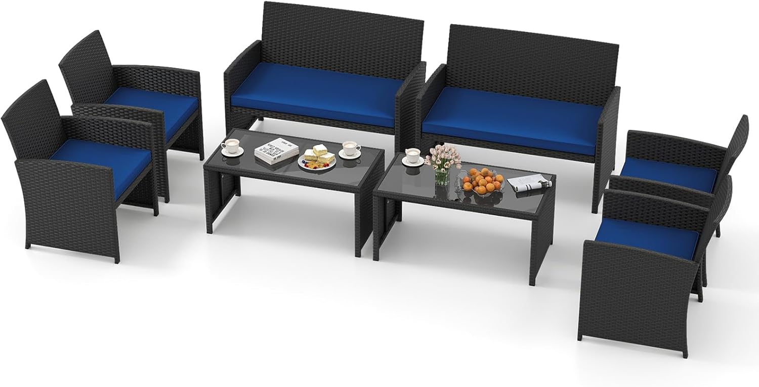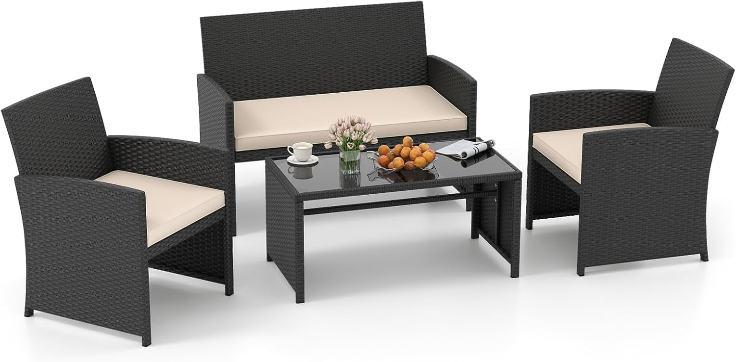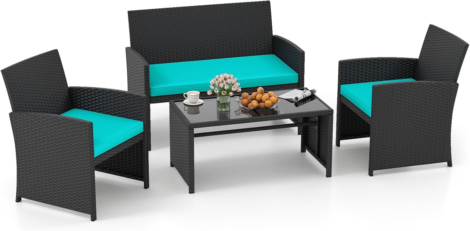 Material: PE Rattan, Tempered Glass, Metal, Polyester, Sponge