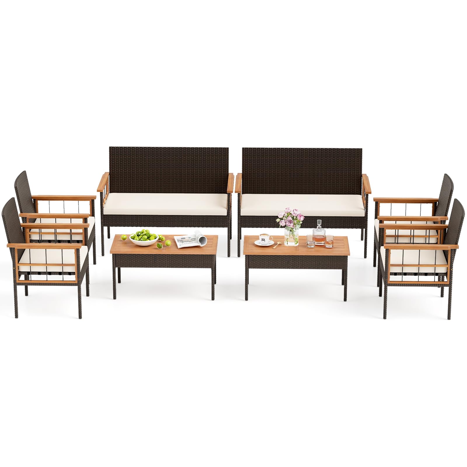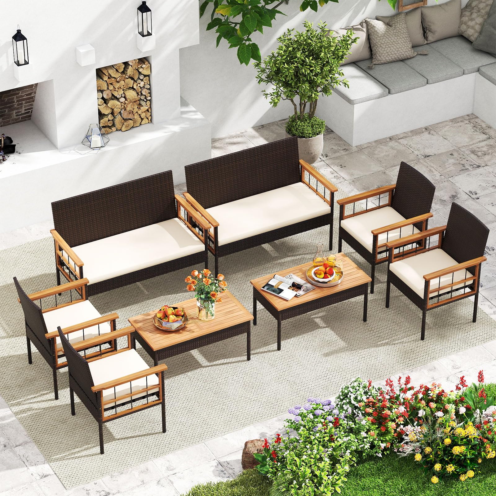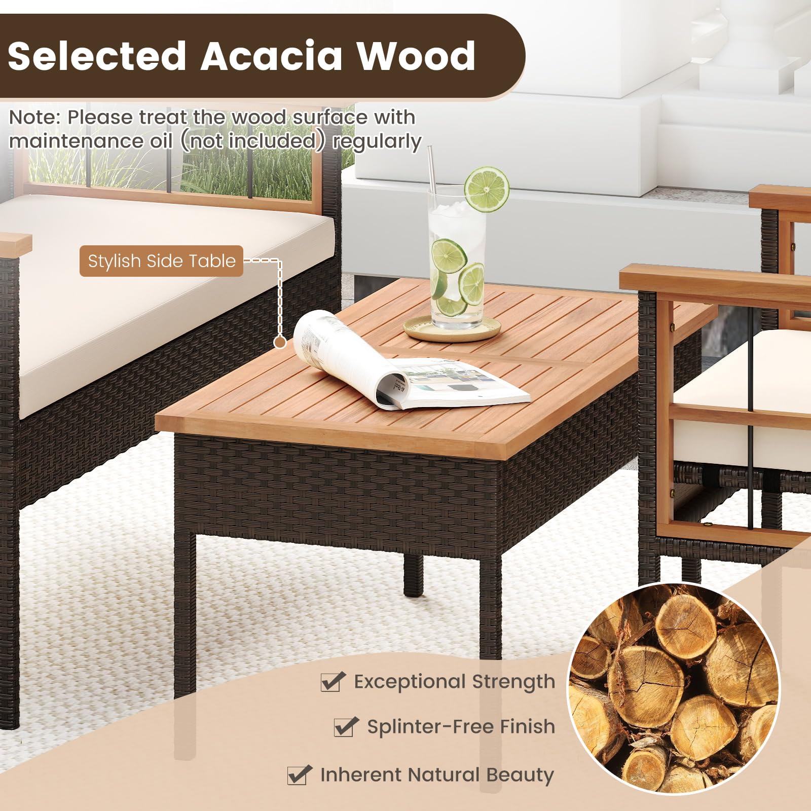 Material: PE Rattan, Metal, Acacia Wood, Polyester, Sponge