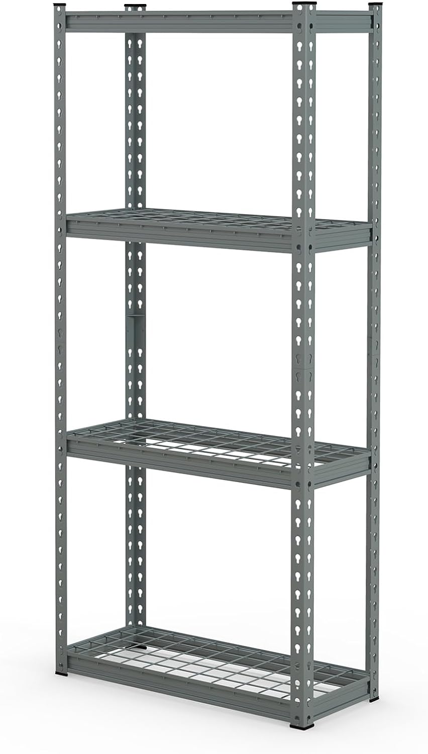 - Large Capacity & Versatile Use: This 4-tier metal storage shelving provides massive storage space for your items, like tools, kitchenware, books, plants and more. Taking advantage of vertical space, the rack will be a perfect storage solution for your garage, kitchen, pantry, basement, etc.