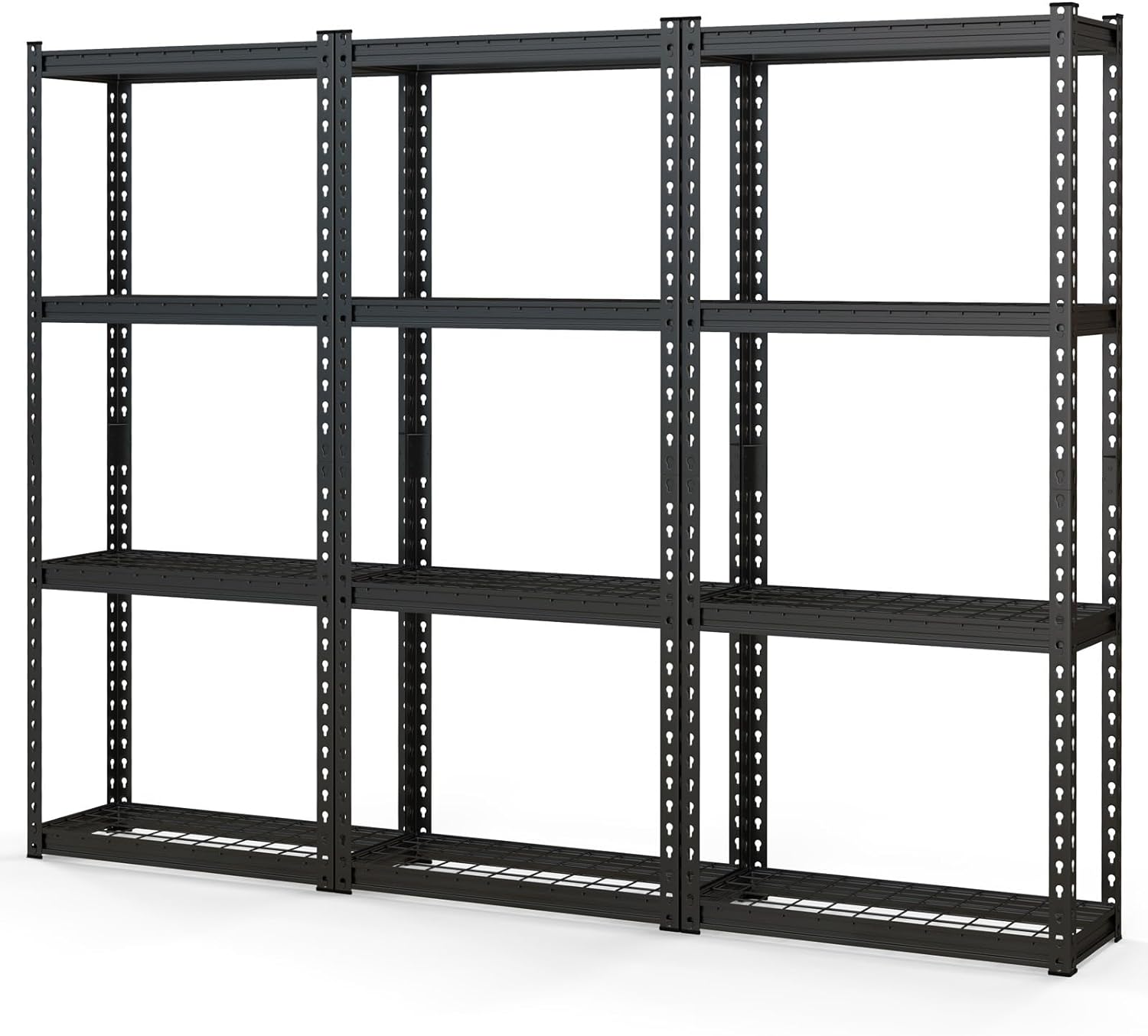- Durable Material & Upgraded Security: Solid metal with rust-proof powder coating ensures good deformation resistance and long-lasting use. 2 anti-tipping devices keep the garage shelving stable and safe to use. Plus, anti-slip foot pads not only enhance stability, but also protect the floor.