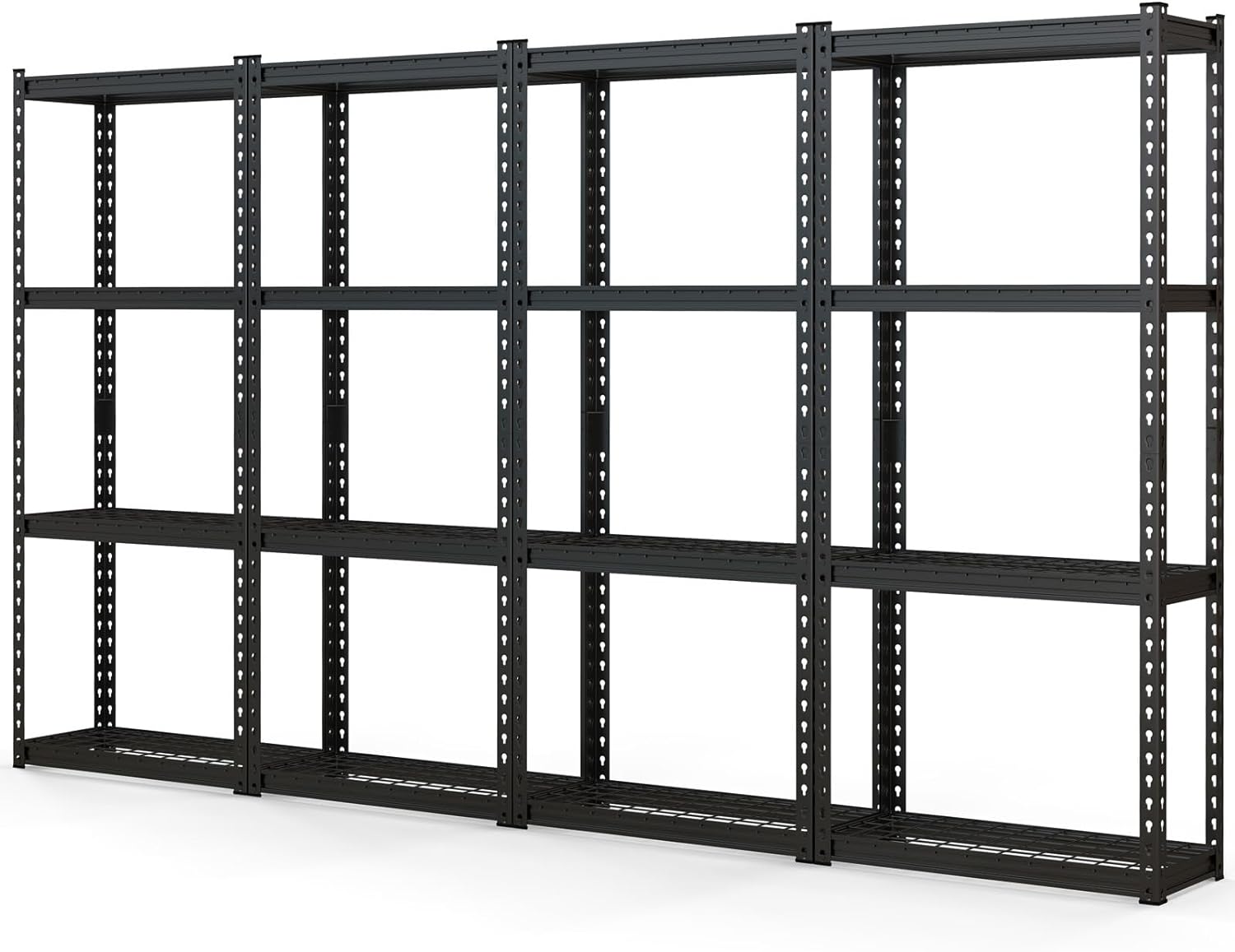 - Flexible Transformation & Adjustable Height: The 4-tier garage shelving can be divided into 2 small shelves for flexible use. Besides, you can adjust the height of the shelves to meet different storage needs of different sized items.
