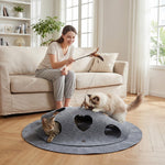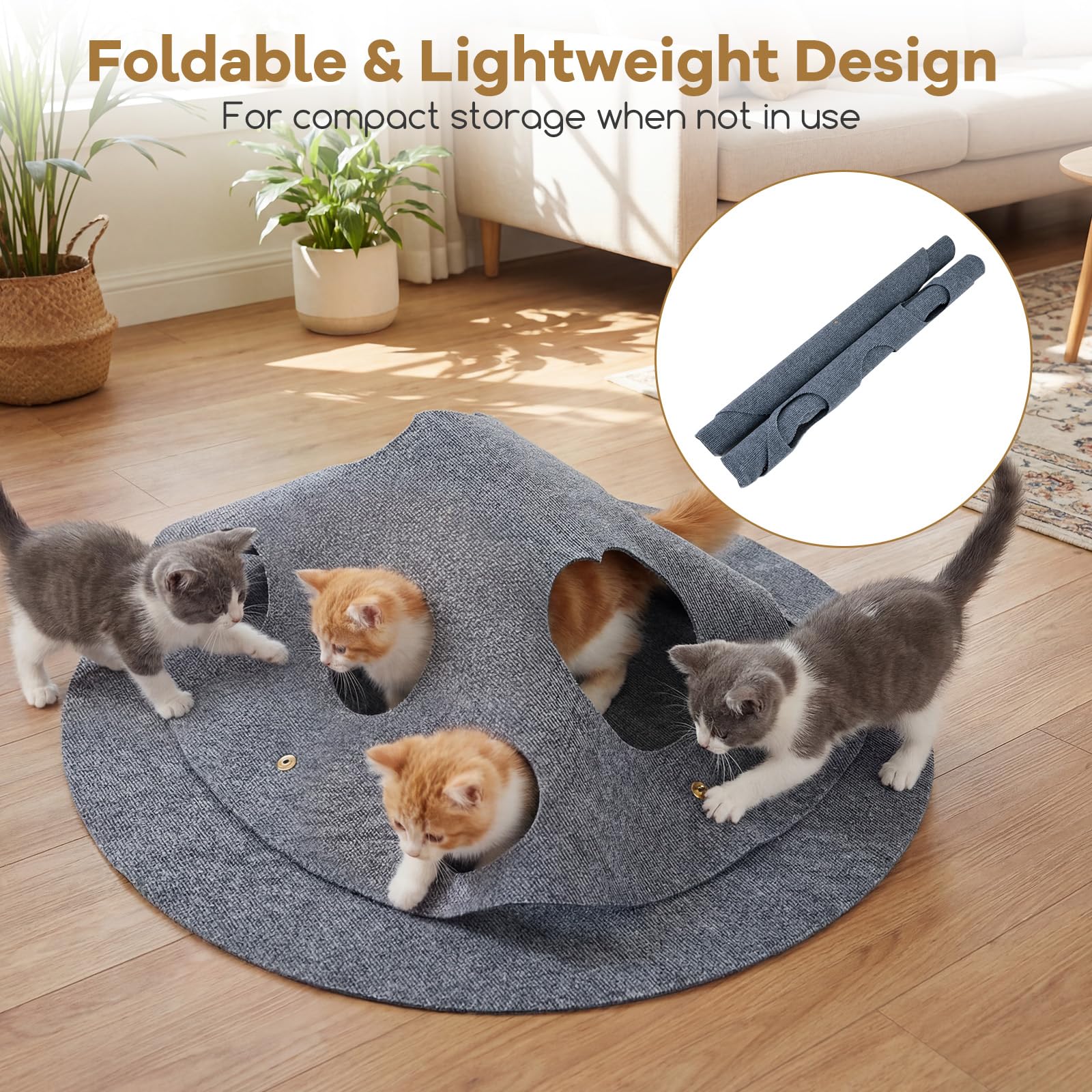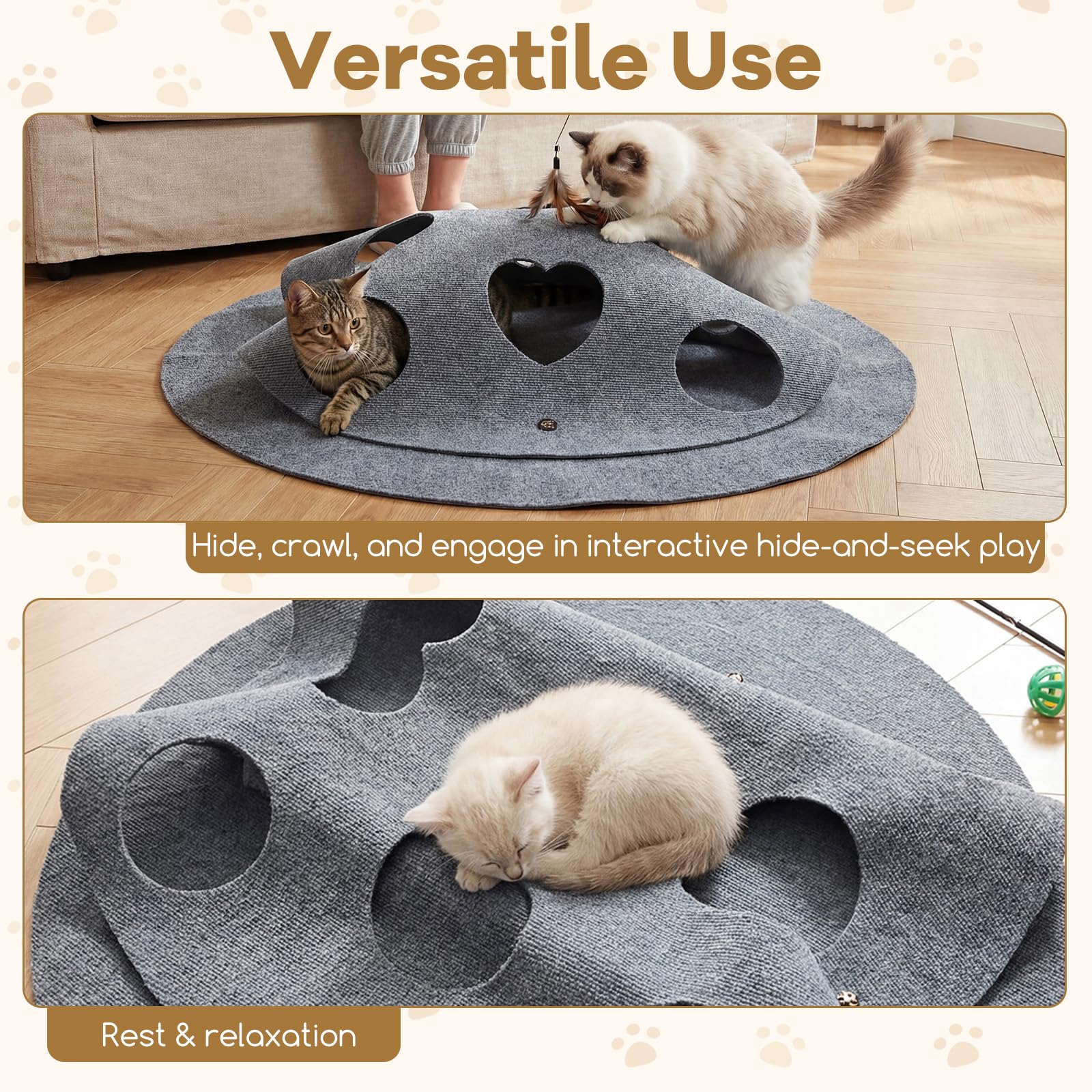 Our spacious 40" cat tunnel functions as a versatile zone where your feline can enjoy hide-and-seek, nap comfortably, and engage in interactive play for hours. Thoughtfully constructed from ultra-soft yet scratch-resistant felt, this setup can be cleaned with a simple lint roller or gentle hand wash, making it easy to maintain while protecting delicate paws. With 8 unique openings in heart and circular shapes, it gives curious cats countless opportunities to pounce, peer, and paw as they explore their new territory. This lightweight play mat folds up easily for convenient storage and travel - perfect for homes or spontaneous getaways - and assembles simply with 4 buckles so you can effortlessly customize the adventure.