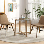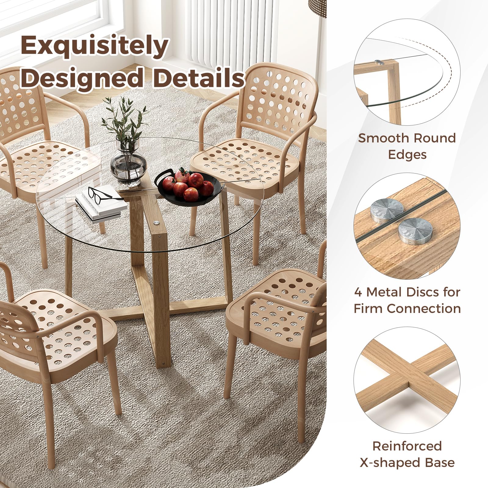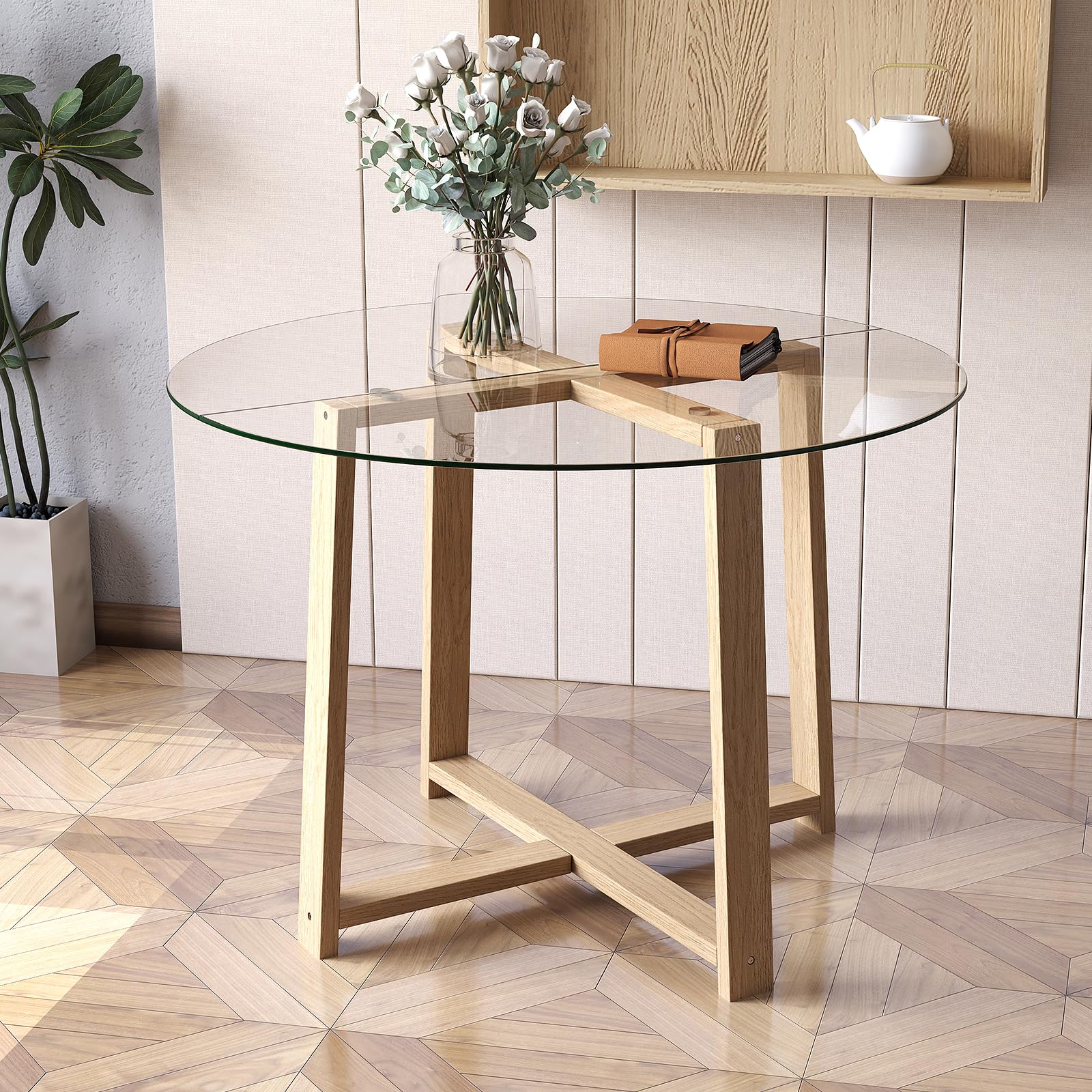- Elegant and Modern Style: The modern design of this dining table combines a sleek glass top with a natural wood frame, adding a touch of sophistication to any space. The round shape promotes a sense of unity during meal times.