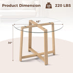 Measuring at 42” x 30” (Dia. x H), this table comfortably seats 4-6 people, making it perfect for intimate dinners or larger gatherings. Its sleek and stylish design adds a touch of sophistication to any room, creating a modern and inviting atmosphere. The heat-resistant and explosion-proof tempered glass tabletop not only looks elegant but also offers easy maintenance. The table features sturdy rubber wood legs with an X-shaped frame, ensuring exceptional stability and a weight capacity of up to 220 lbs/100 kg for long-lasting use. Whether used as a functional kitchen table, a chic dining table for family meals, a cozy breakfast spot, a fashionable coffee table, or a relaxing tea table, this versatile round glass dining table seamlessly fits into your lifestyle.