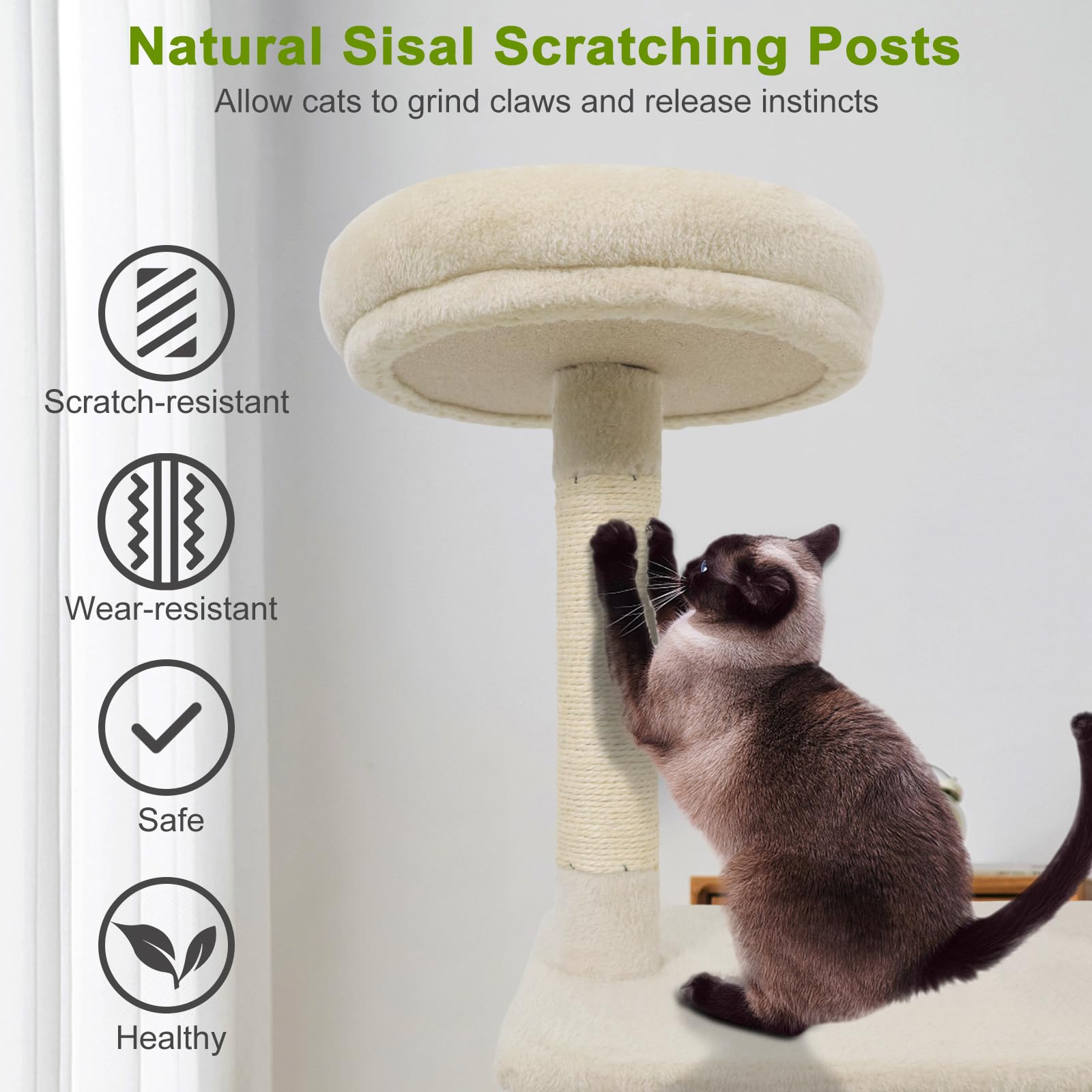 This cat tree is equipped with scratching posts that satisfy your cat’s instinct to scratch.