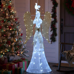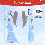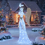 Emitting a soft, inviting glow with 150 LED lights, this pre-lit Xmas decoration enhances the spiritual ambiance of the holiday season. Anchored by a sturdy metal frame, this lighted angel ensures durability and stability indoors or outdoors, with easy set-up using included zip ties and ground stakes. Versatile for homes, yards, porches, or shops, this enchanting halo angel radiates elegance and warmth, making it an ideal addition to brighten any space with holiday spirit throughout the day and night.