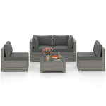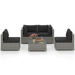 Rattan patio furniture set with a coffee table and 4 comfortable chairs