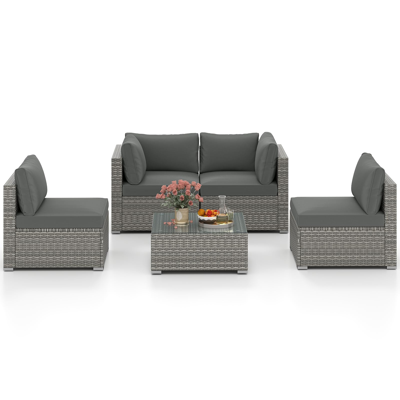 - Suitable for Multiple Scenarios: The 5-piece set enhances your outdoor setting with a touch of nature, suitable for a variety of outdoor settings such as yards, poolside, or patio, allowing you to enjoy outdoor living to the fullest. Coffee Table is 28.5” x 28.5” x 12”(L x W x H), Sofa is 29” x 25.5” x 23.5”(L x W x H), and Corner Sofa is 29” x 29” x 23.5”(L x W x H).