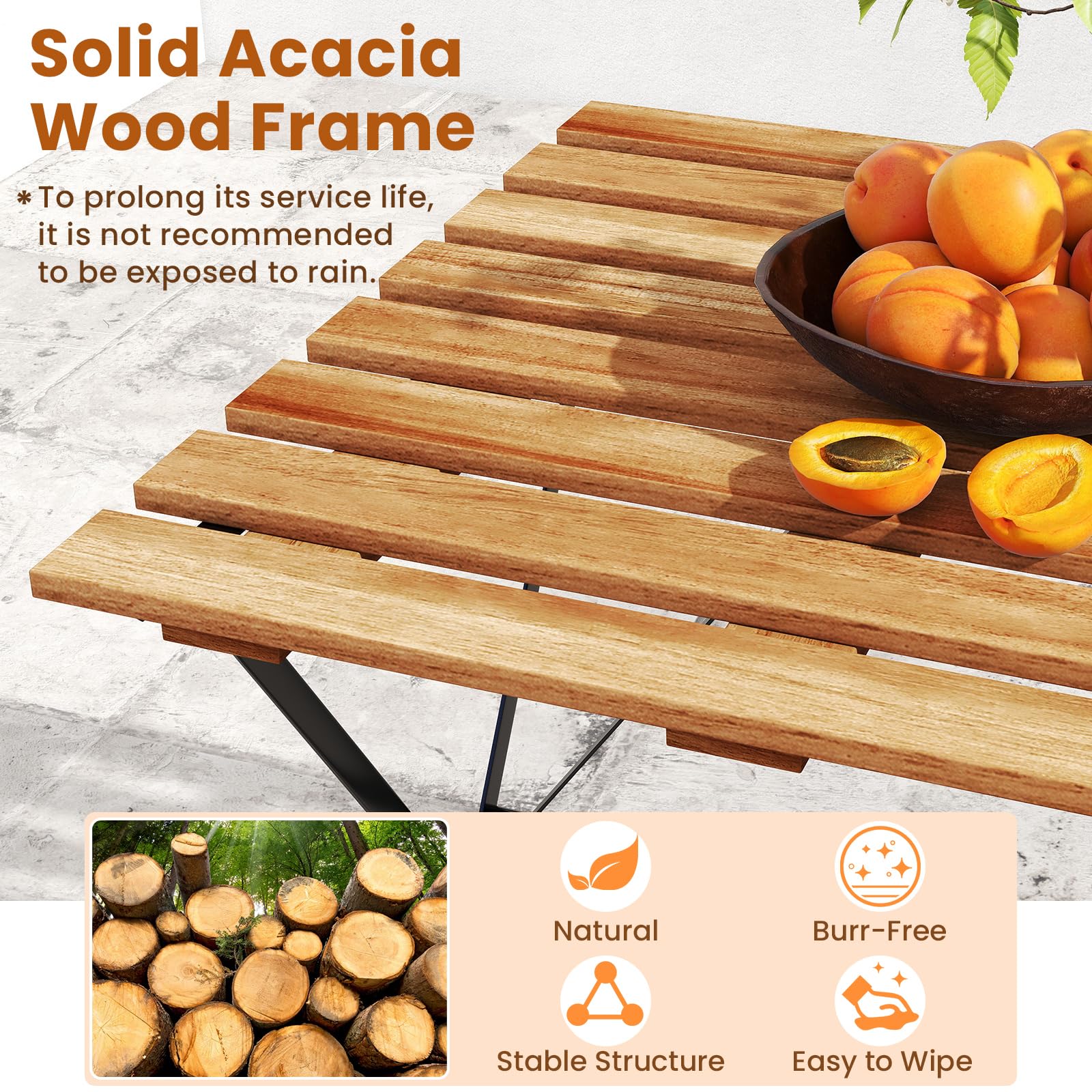 Whether you need a surface to chat with family, to sit and eat, or just a tabletop to store items, our 5-piece dining table set consisting of a rectangular dining table and 4 chairs can offer great convenience for you. Constructed of the metal frame and premium acacia wood, the modern dining room set is sturdy to ensure a long lifespan. Unique stylized design makes the table set suitable for most venues. An ideal way to enjoy delightful dining or drinking time with family or friends!