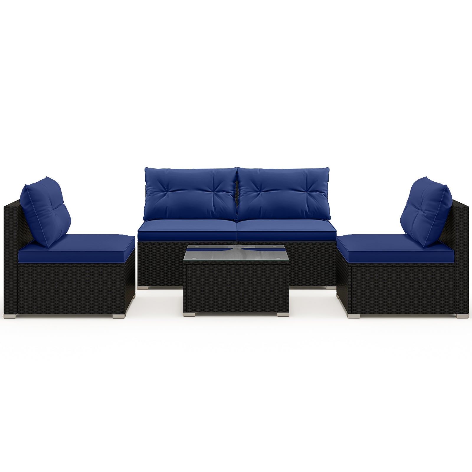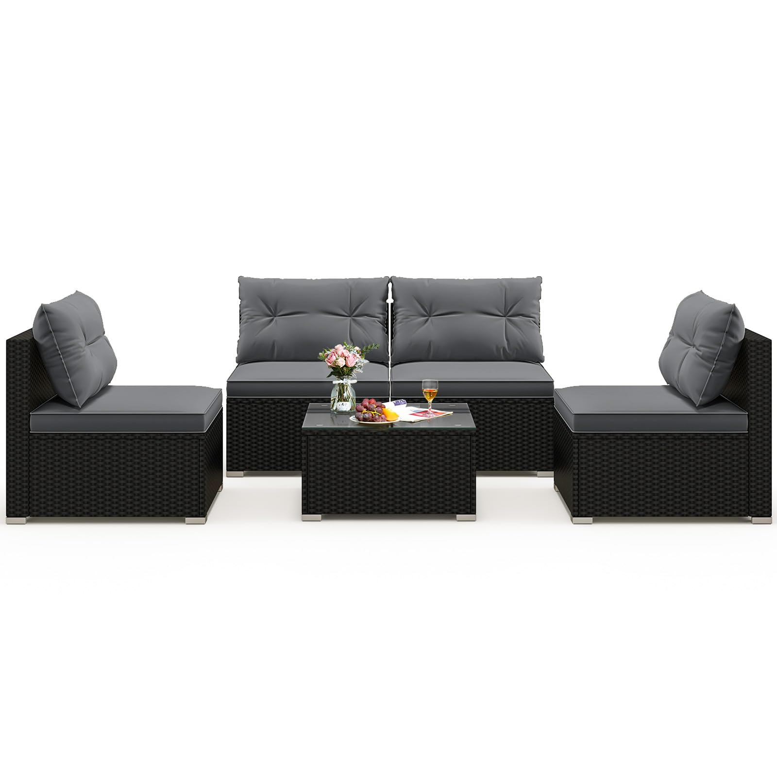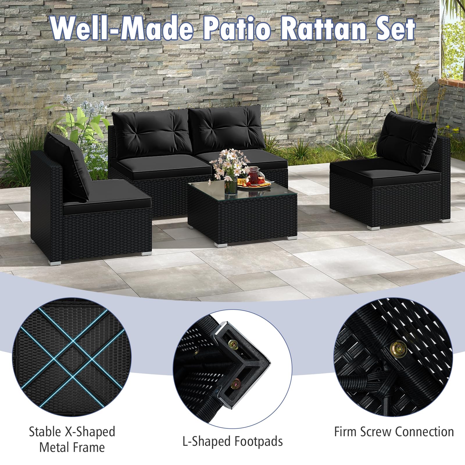 - Elegant Rattan Set: All the 5 pieces of this patio rattan set are wrapped with premium black PE rattan which is well-woven and anti-fading, ensuring prolonged outdoor using time. And the rattan surface also makes the whole set more elegant