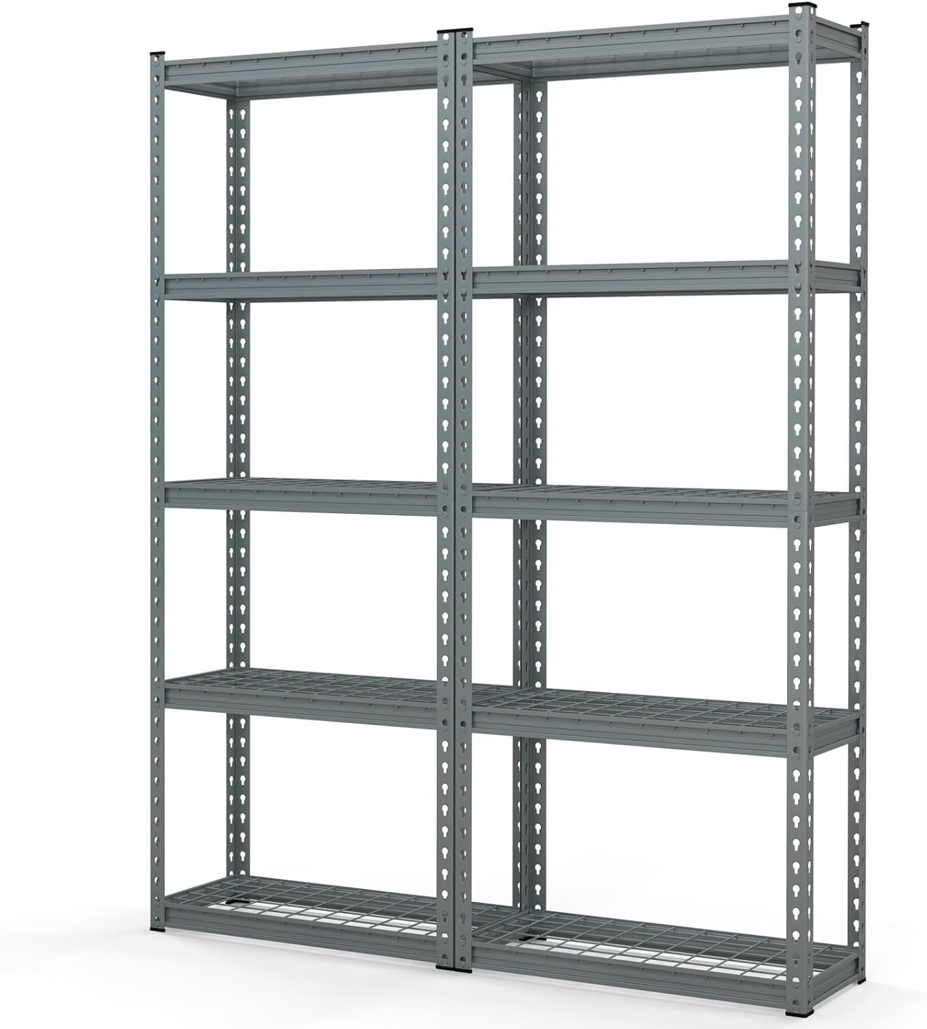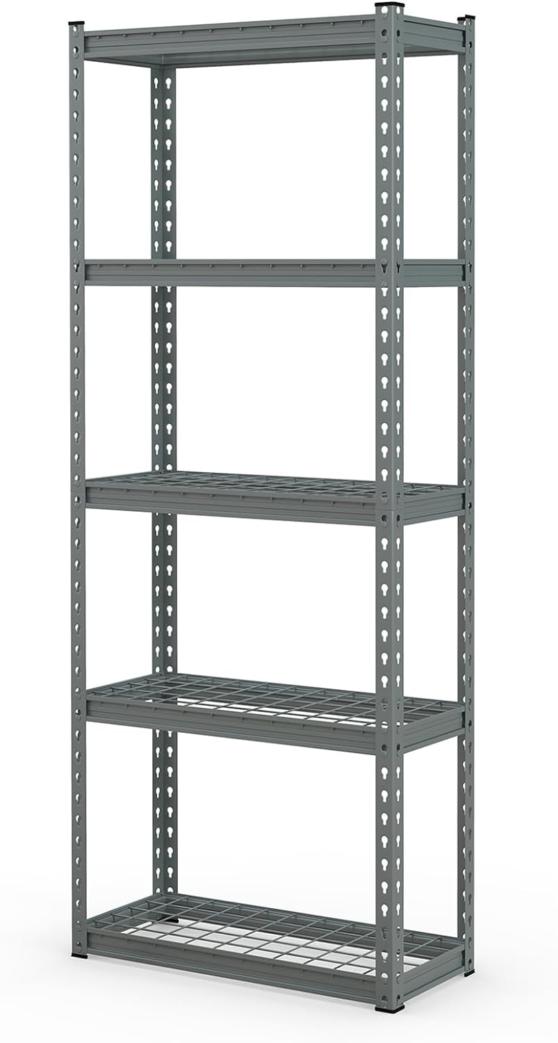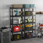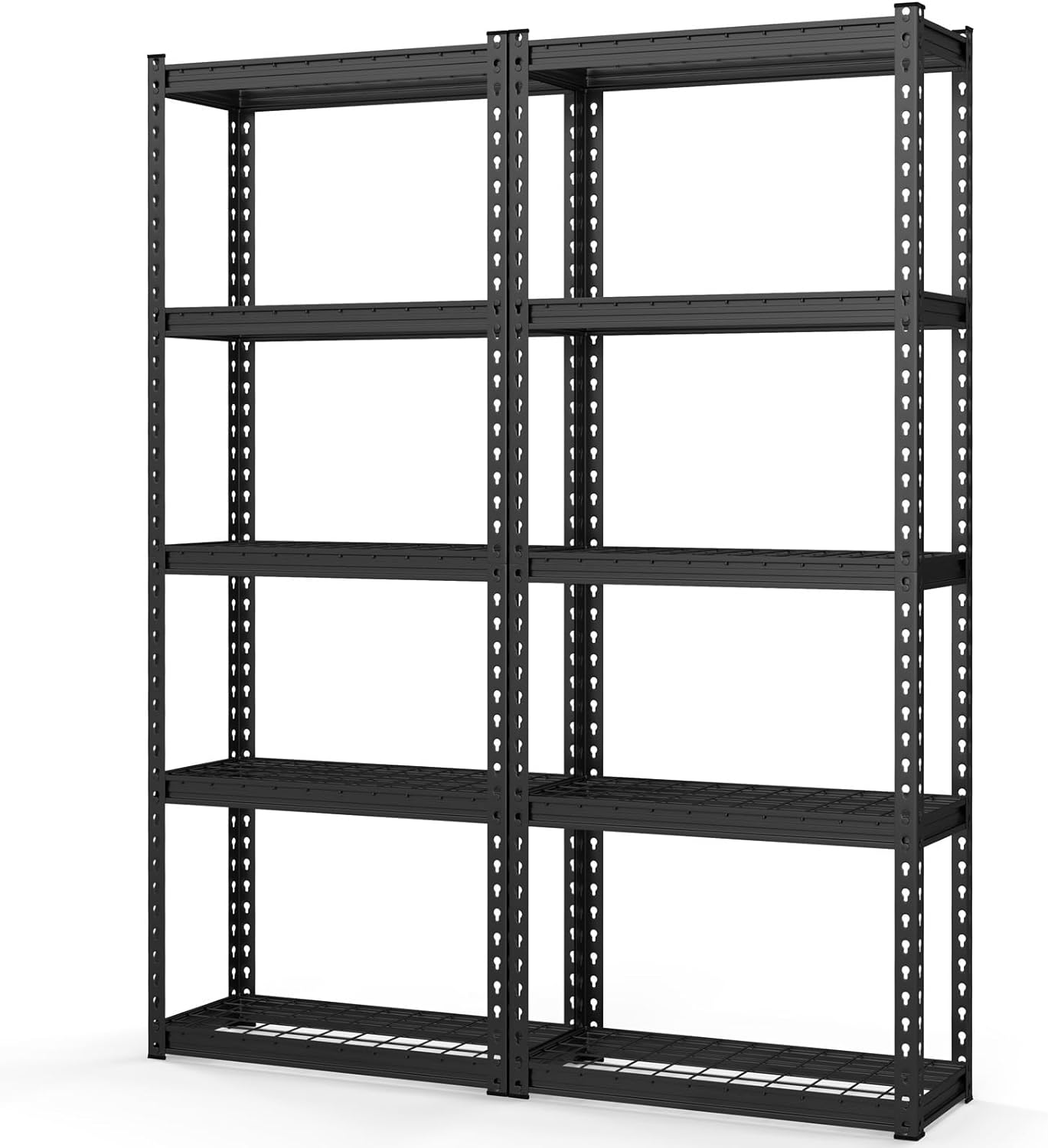 - Large Capacity & Versatile Use: This 5-tier metal storage shelving provides massive storage space for your items, like tools, kitchenware, books, plants and more. Taking advantage of vertical space, the rack will be a perfect storage solution for your garage, kitchen, pantry, basement, etc.