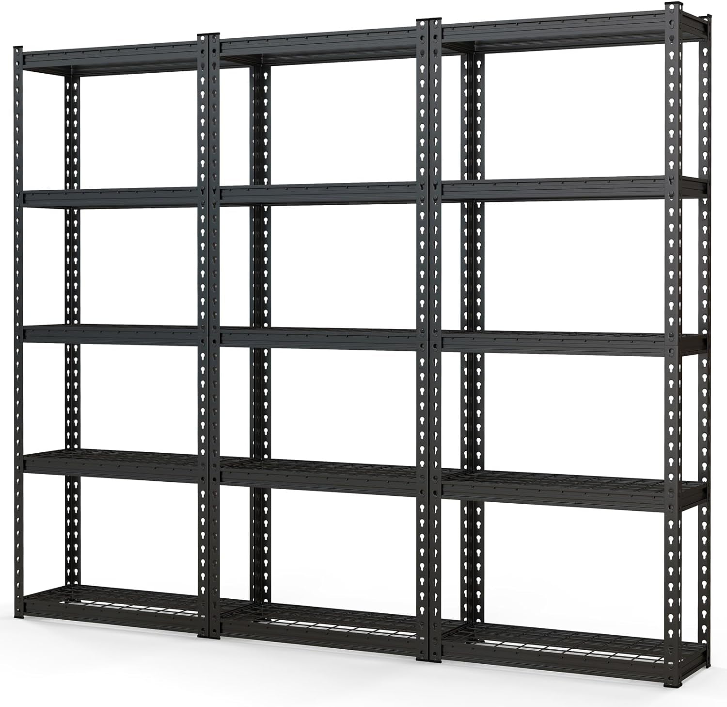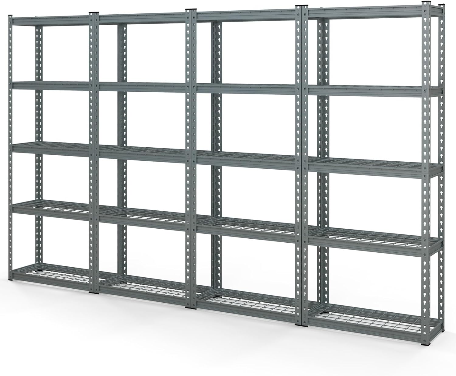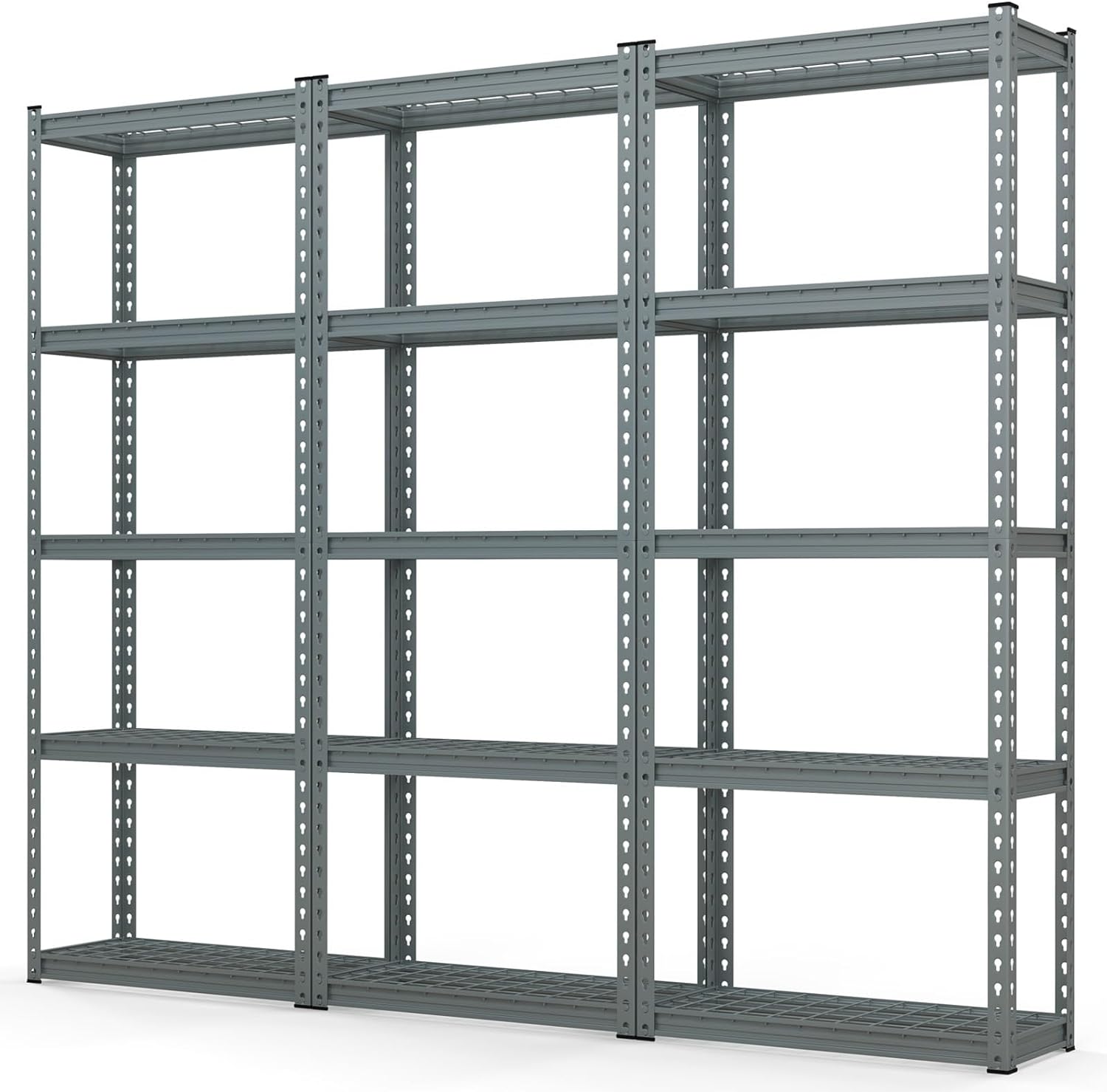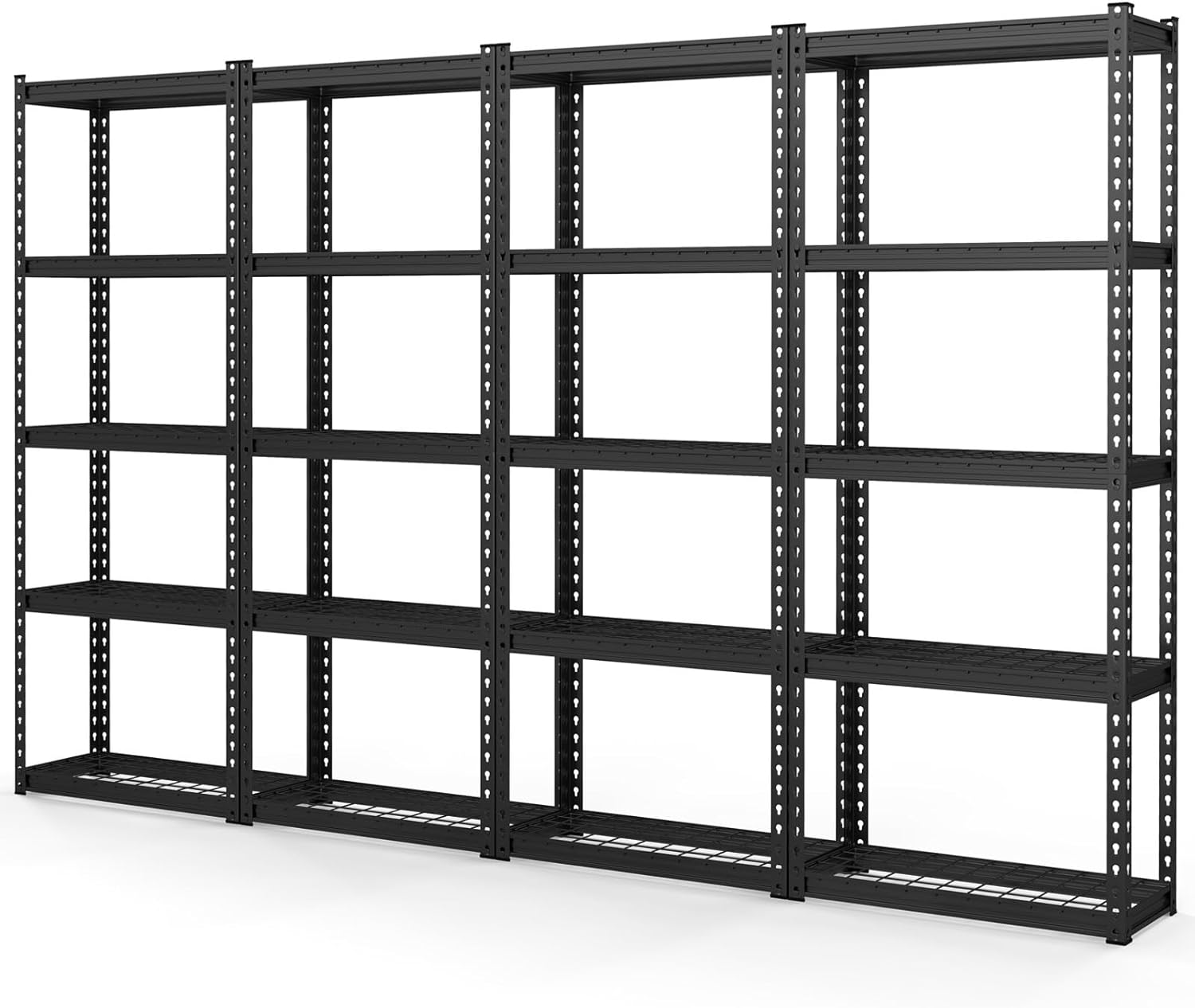 - Large Capacity & Versatile Use: This 5-tier metal storage shelving provides massive storage space for your items, like tools, kitchenware, books, plants and more. Taking advantage of vertical space, the rack will be a perfect storage solution for your garage, kitchen, pantry, basement, etc.