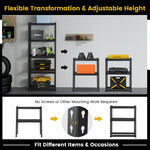 Made from high-strength powder-coated metal, this garage shelving unit is built to last and can provide sturdy support for all your items. Each tier can hold stuffs up to 300 lbs. This 5-tier vertical storage rack provides large storage space without taking up much floor space. Besides, you can easily adjust the shelf heights to fit your specific storage needs. The shelf can also be easily disassembled into two separate smaller units to fit different items & occasions. Designed with safety in mind, this 5-tier garage shelving unit comes with two anti-tipping devices. Additionally, the bottom anti-slip foot pads are equipped with to prevent any unwanted sliding or scratches on your floors.