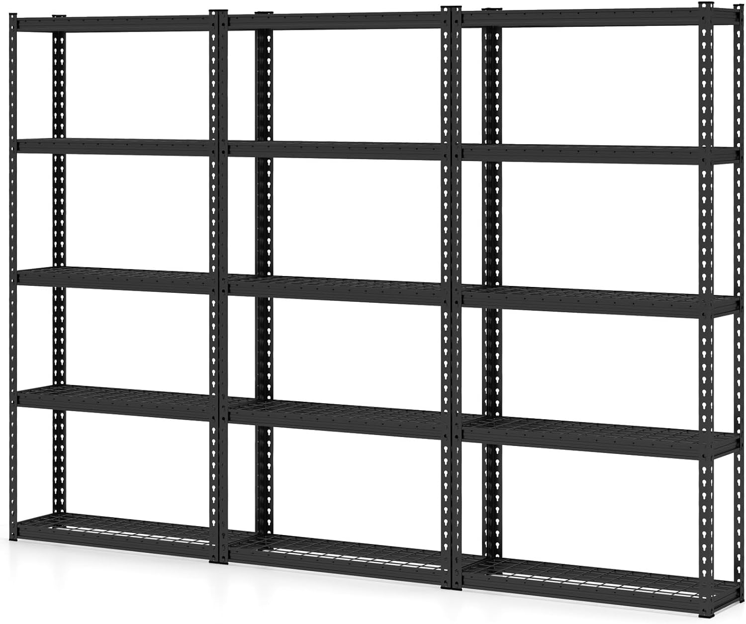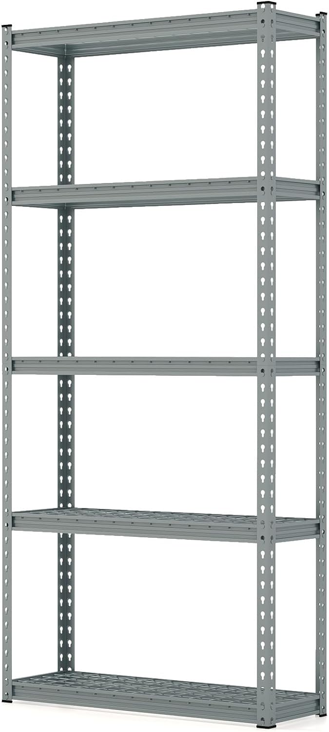 - Large Capacity & Versatile Use: This 5-tier metal storage shelving provides massive storage space for your items, like tools, kitchenware, books, plants and more. Taking advantage of vertical space, the rack will be a perfect storage solution for your garage, kitchen, pantry, basement, etc.