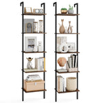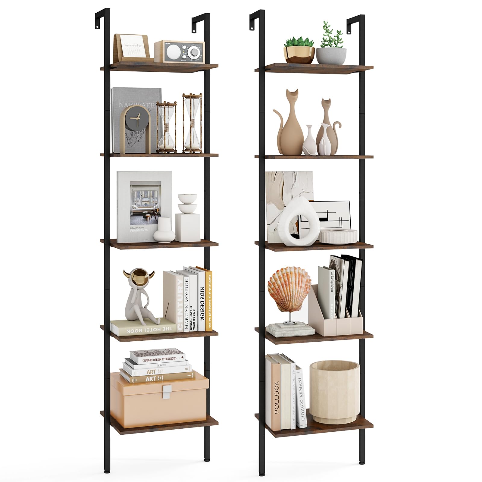 The 5-tier bookshelf provides ample open space to store and display your books or decorations. Designed to optimize vertical space, the 70" tall ladder shelf features a compact wall-mount design that securely attaches to the wall using dual mounting kits. Constructed of thickened boards and sturdy metal frame, this ladder bookshelf is built to last, with each shelf supporting up to 33 lbs. And adjustable foot pads ensure it stands stably on uneven floors. Whether used in the living room, bedroom, study, balcony, the industrial utility ladder shelf will meet your needs.