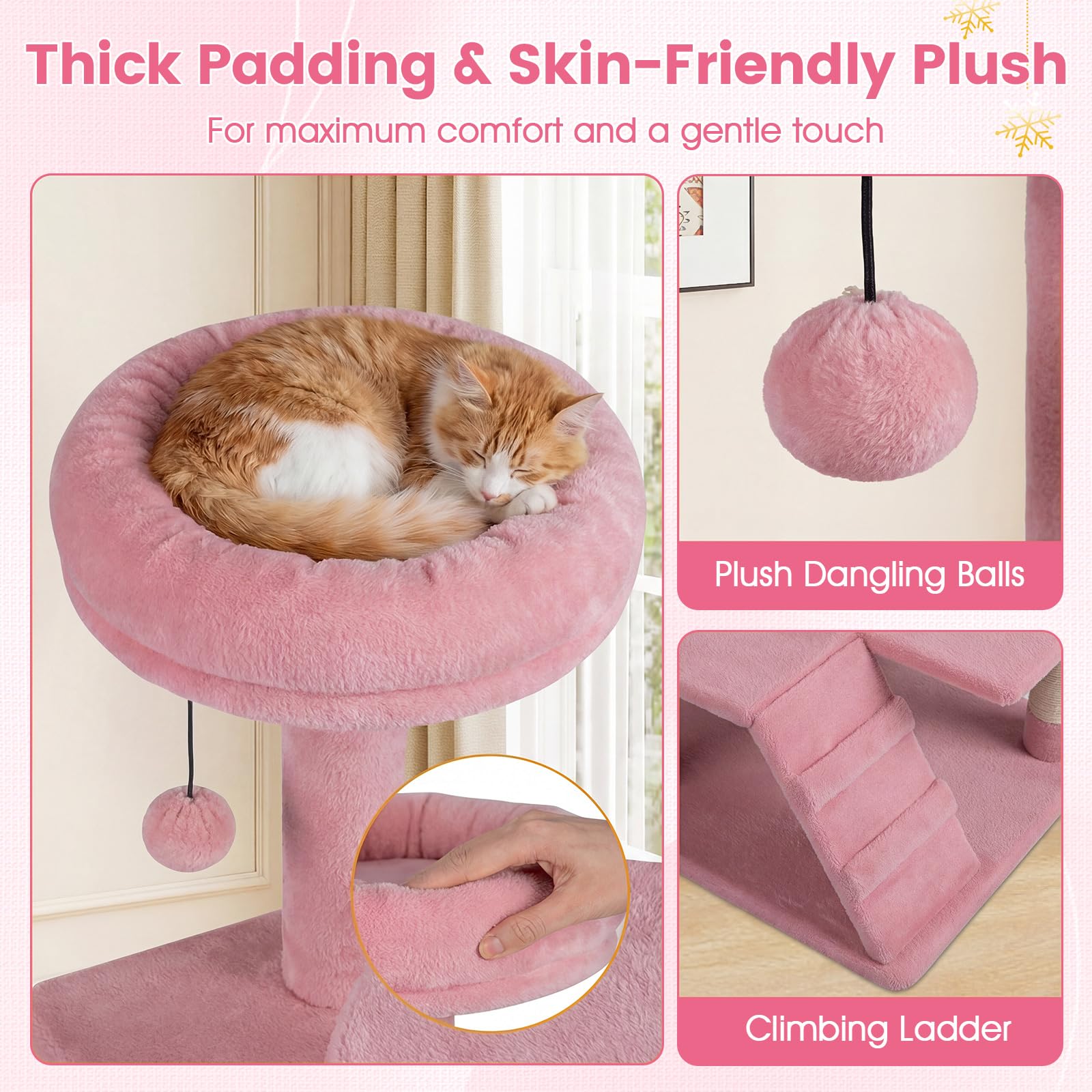 3 top perches give cats comfortable places to lounge, nap, and relax