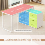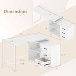 The versatile and stylish desk is designed with a 360° rotating top, allowing easy customization to fit your space. It comes equipped with a convenient built-in charging station featuring 2 AC outlets, a USB port, and a Type-C port for powering devices. The home office desk offers a multifunctional storage system, with a wide tabletop, a cabinet top, open compartment, 3 drawers, and a 3-positon adjustable shelf. Its heavy-duty metal structure ensures long-lasting support and stability, with adjustable foot pads for uneven floors. More user-friendly details await your discovery.