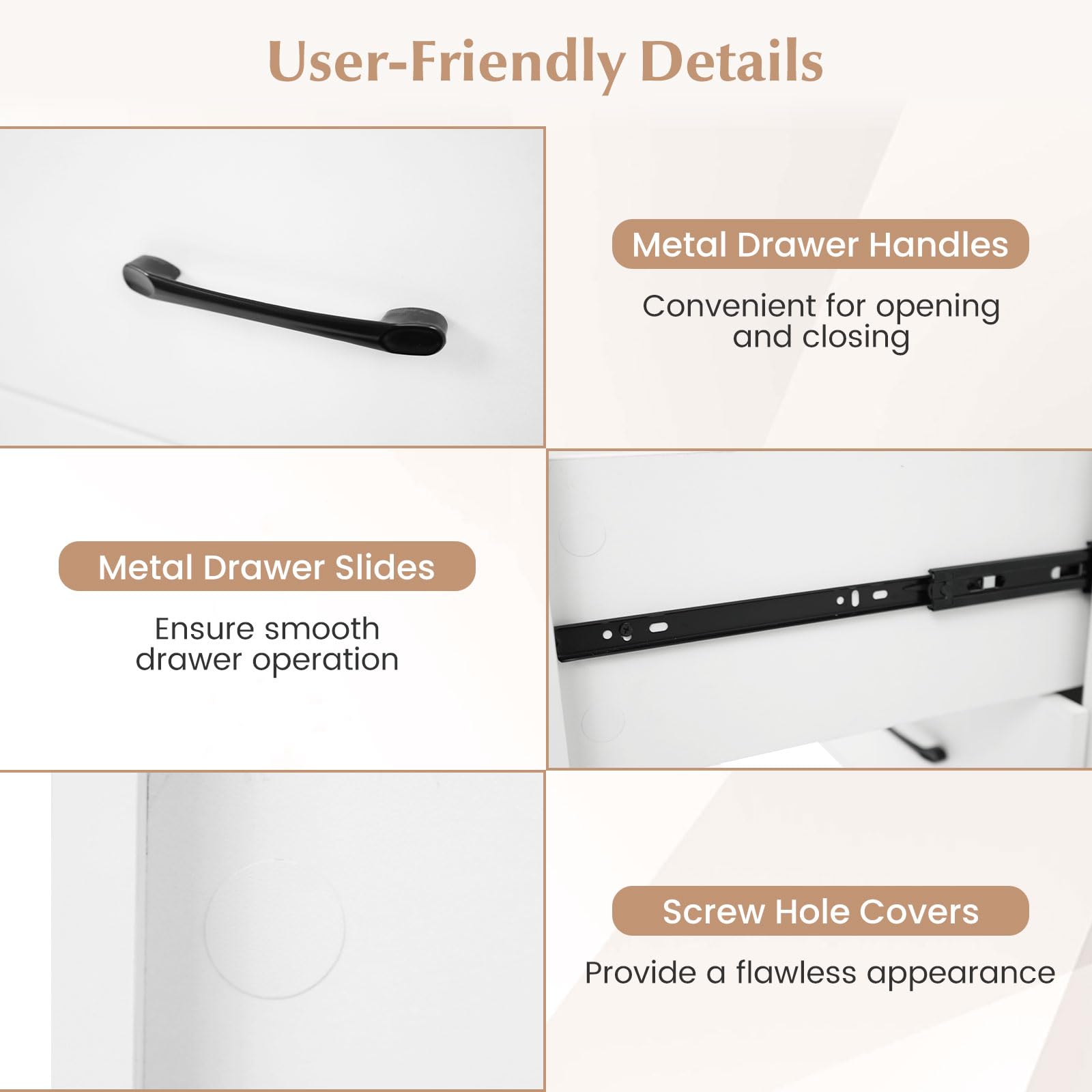 Equipped with metal drawer slides that ensure smooth drawer operation