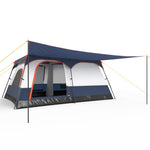 - Spacious Family Shelter: This large camping tent measures 14 x 10 x 6.6 ft (L x W x H)/12.5 x 8.5 x 6.3 ft (L x W x H), which could comfortably accommodate 8-10 people for family outings. It easily fits 8 sleeping bags or 2 queen-size air mattresses, allowing for a cozy night's sleep. With a 79" center height, you can stand up and move around with ease.