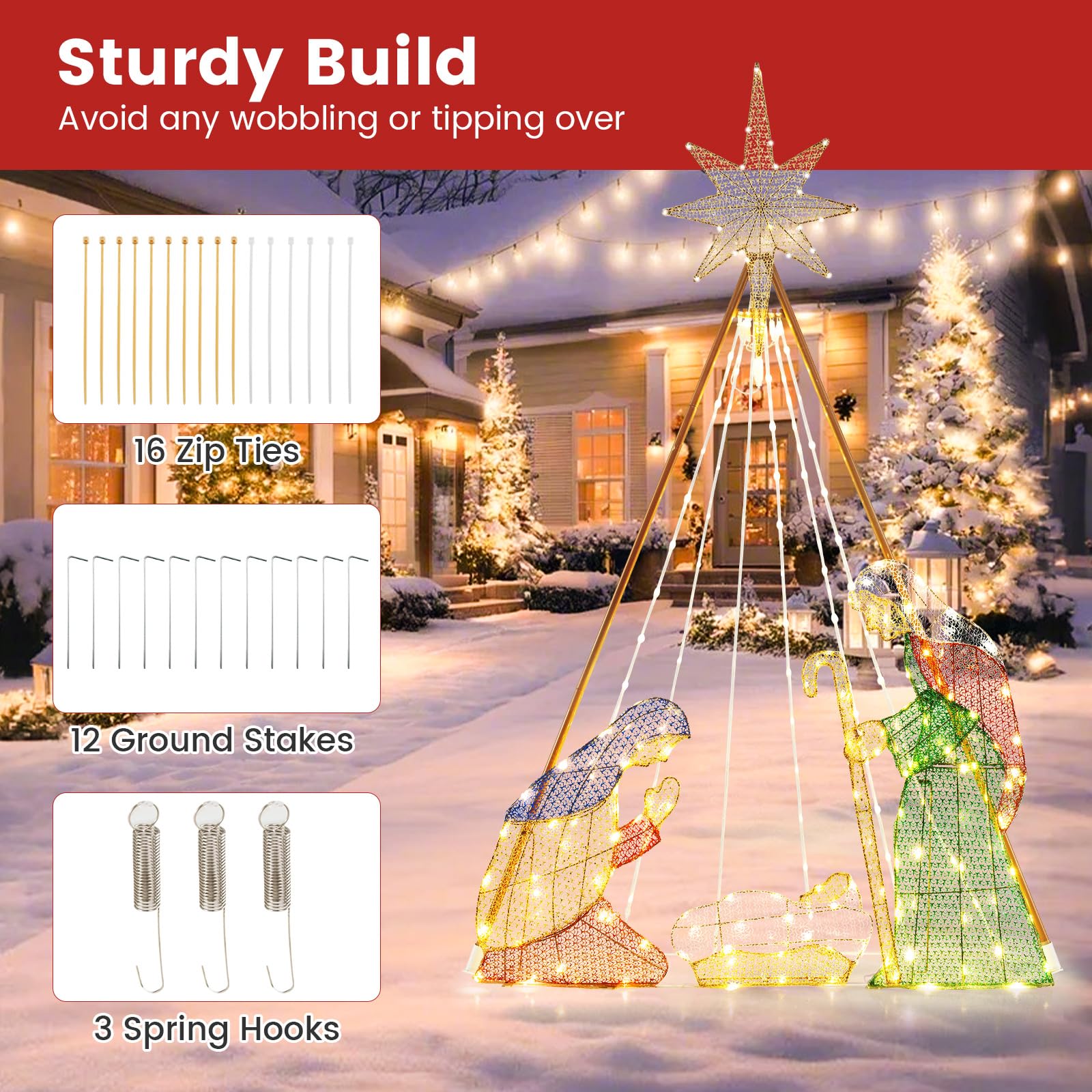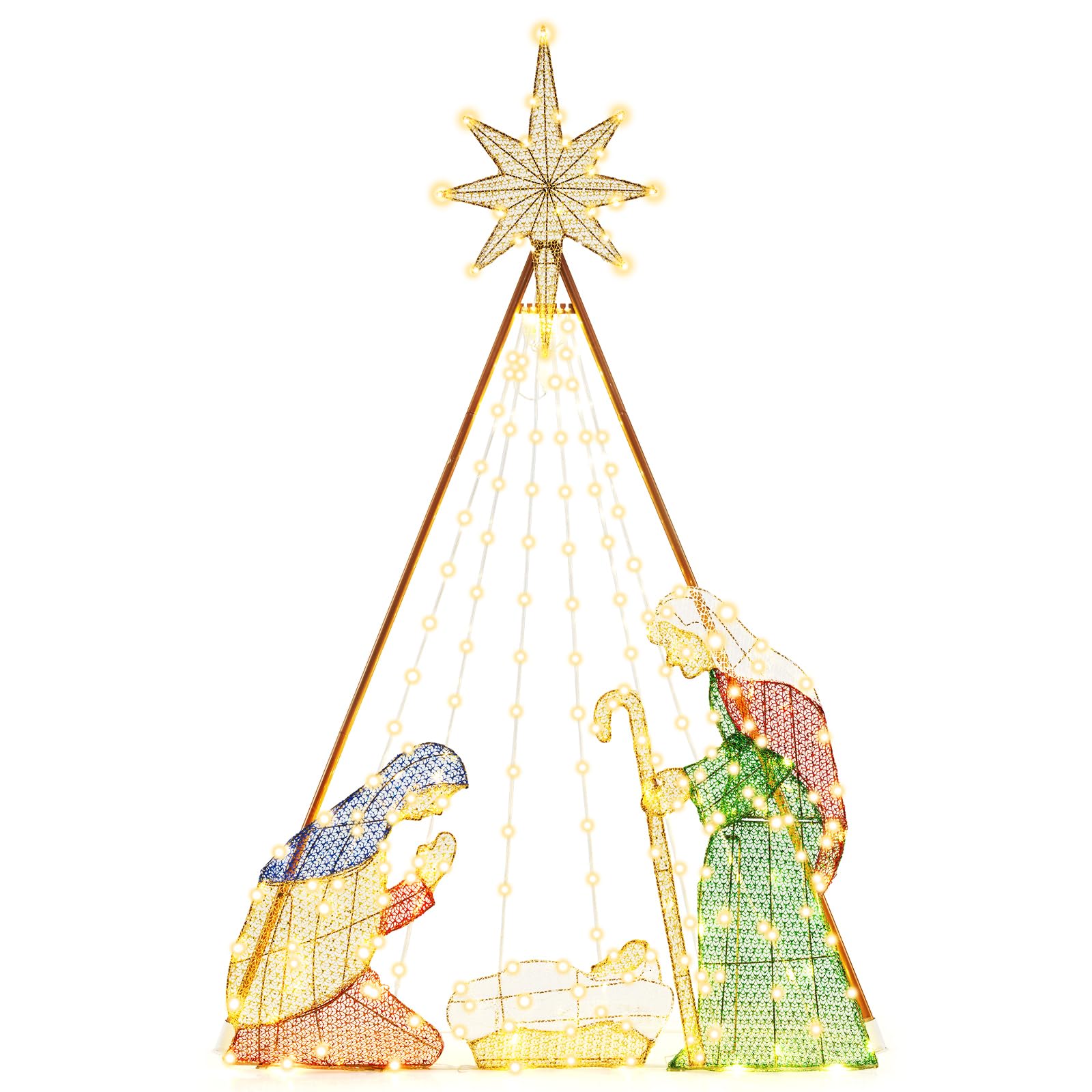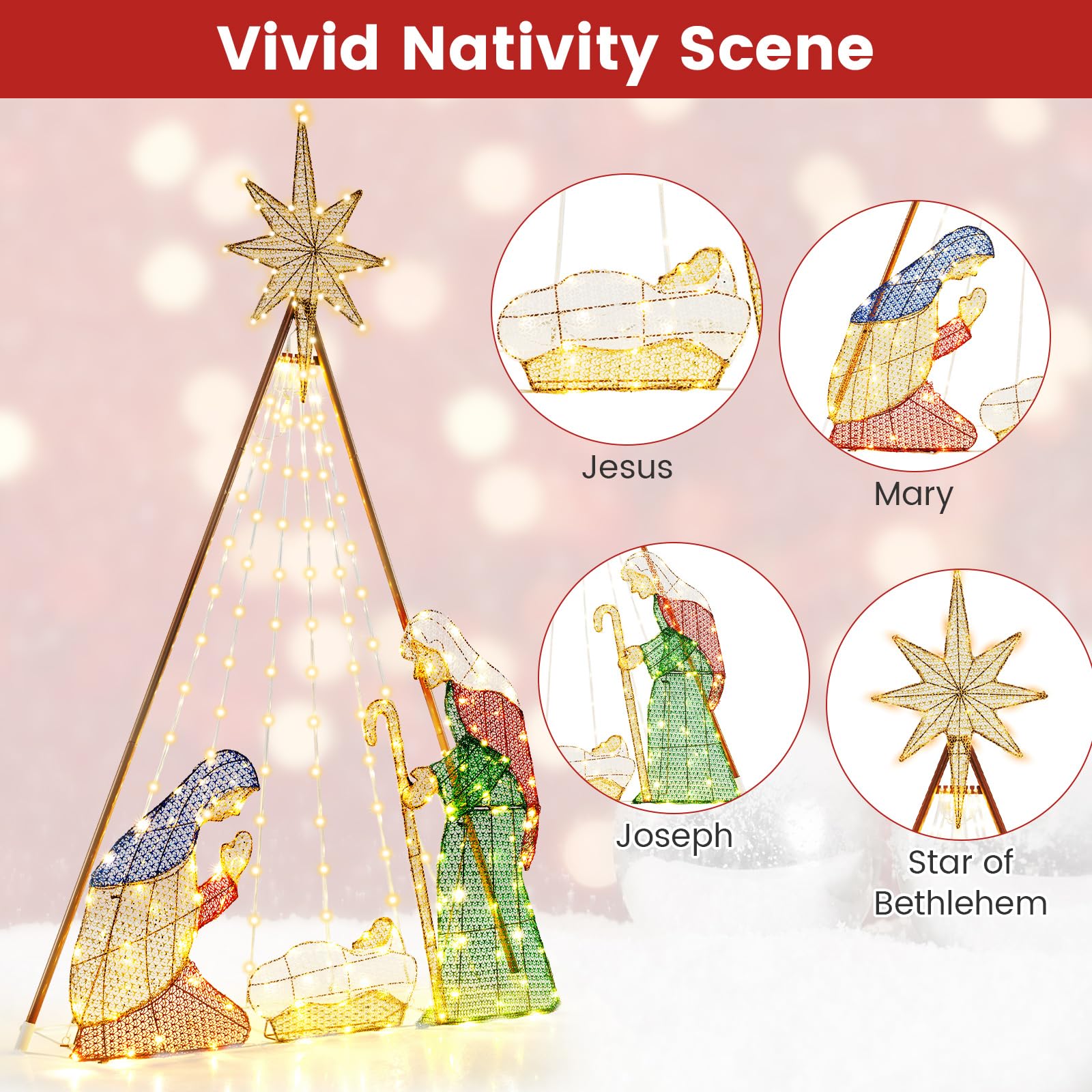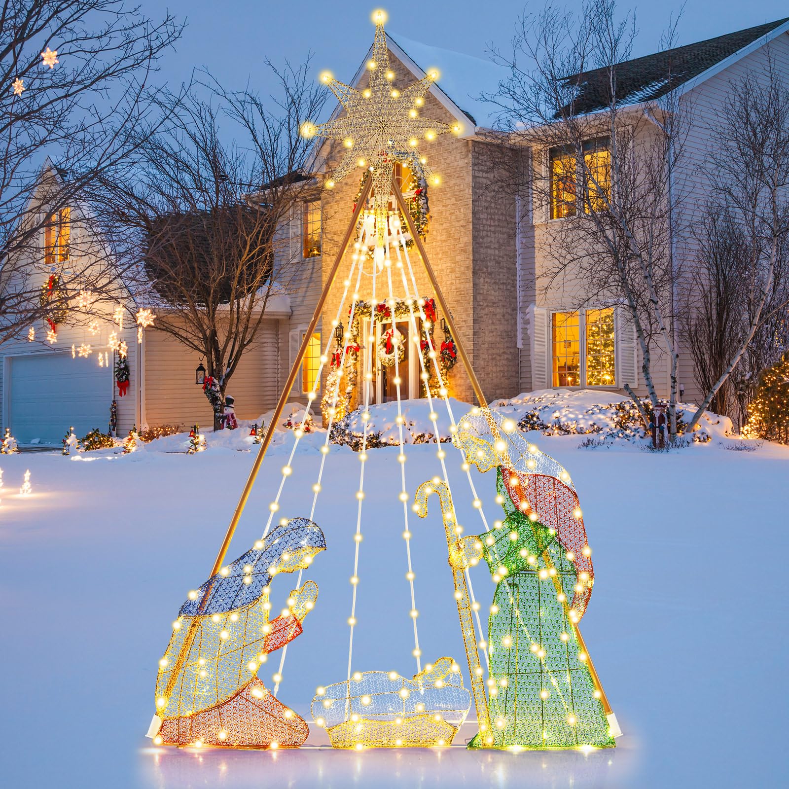- Vivid Nativity Scene: Enhance Christmas atmosphere with this meticulously crafted 6 ft pre-lit nativity scene set. All the figures, including Jesus, Mary, Joseph, are designed with intricate detail, capturing the essence of the holy family. The star of Bethlehem on the top also will warm the hearts of all who see it.