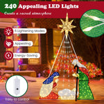 This set features beautifully crafted figures of Jesus, Mary, and Joseph under the illuminating glow of the Star of Bethlehem, creating a sacred atmosphere. Equipped with 240 LED lights offering 6 lighting modes, it casts a warm, inviting light ideal for any festive setting. Robustly designed to withstand the elements, the scene comes with multiple accessories for fixation, including 20 zip ties, and 4 ground stakes. Ideal for both indoor and outdoor setups, this nativity scene adds a touch of serenity and tradition to community events and home decorations, making your celebrations truly magical.