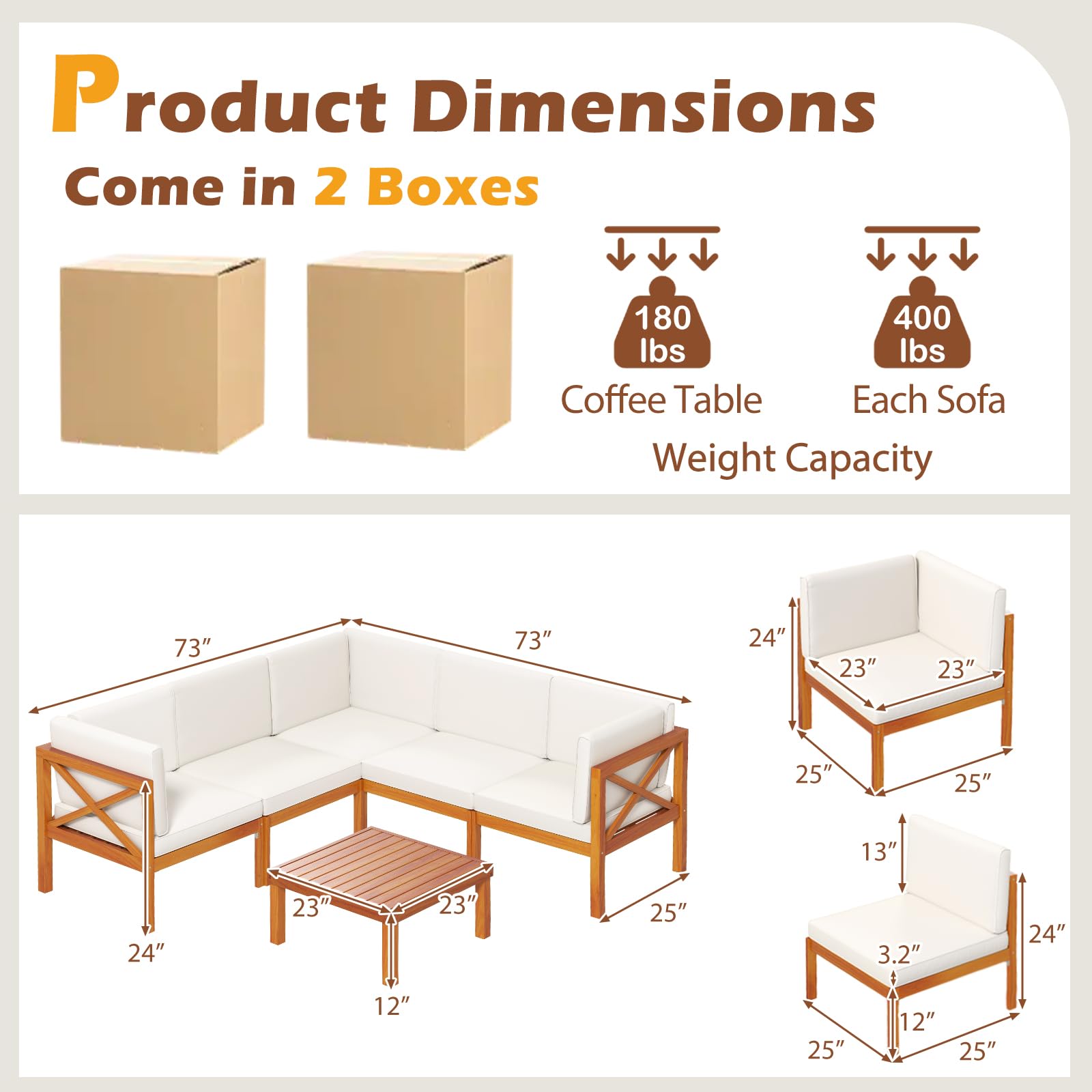 Weight Capacity of Each Sofa: 400 lbs/180 kg