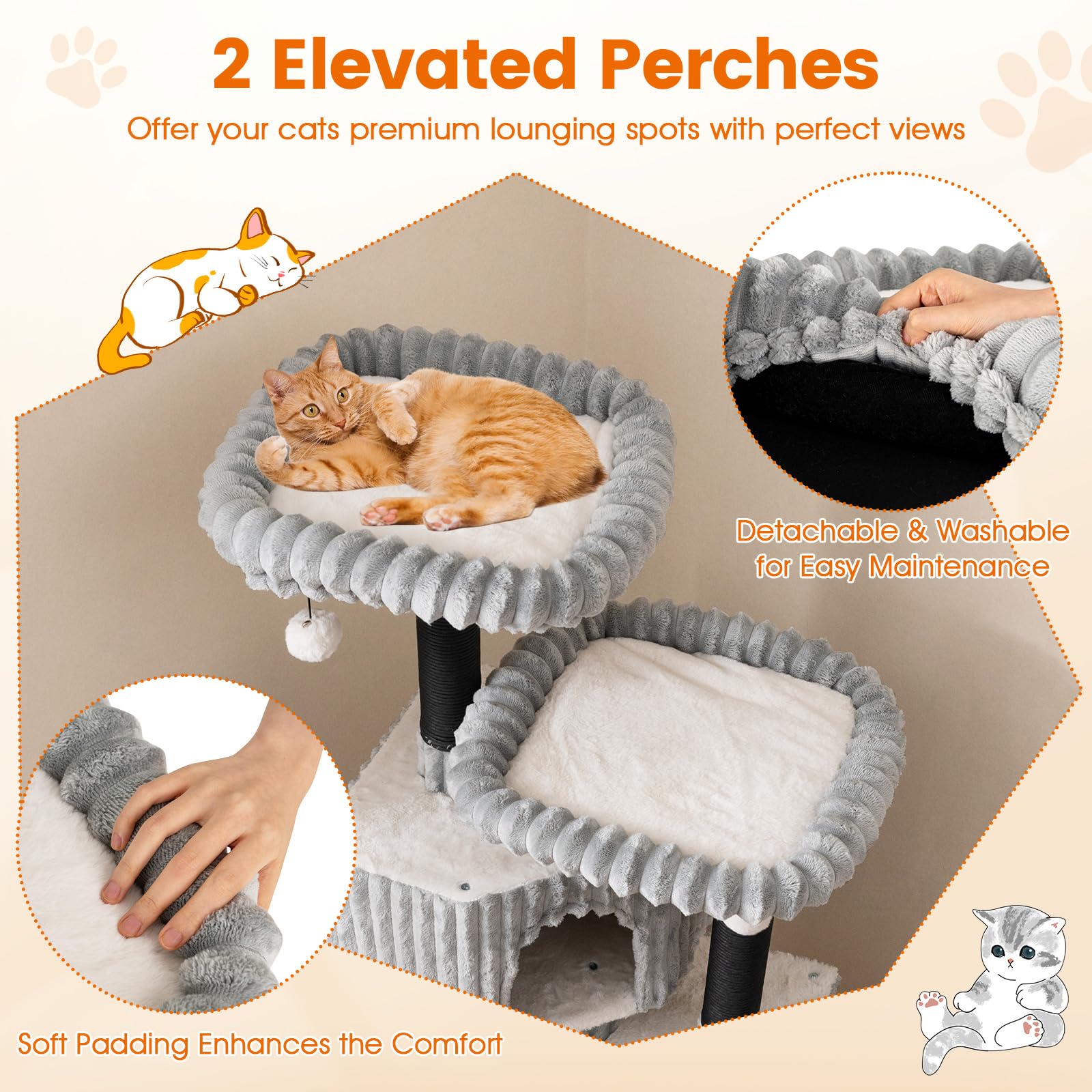 2 elevated perches offer your cats premium lounging spots with perfect views