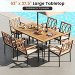 - Umbrella Hole Design: This wood dining table is prepared for sunny or rainy days with a practical umbrella hole at the center of the table, perfect for installing a patio umbrella. Additionally, there is a hole cover to maintain a sleek tabletop when the umbrella is not in use (note: the patio umbrella is not included).
