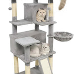Multi-level design offers climbing, jumping, resting, and playing zones for cats