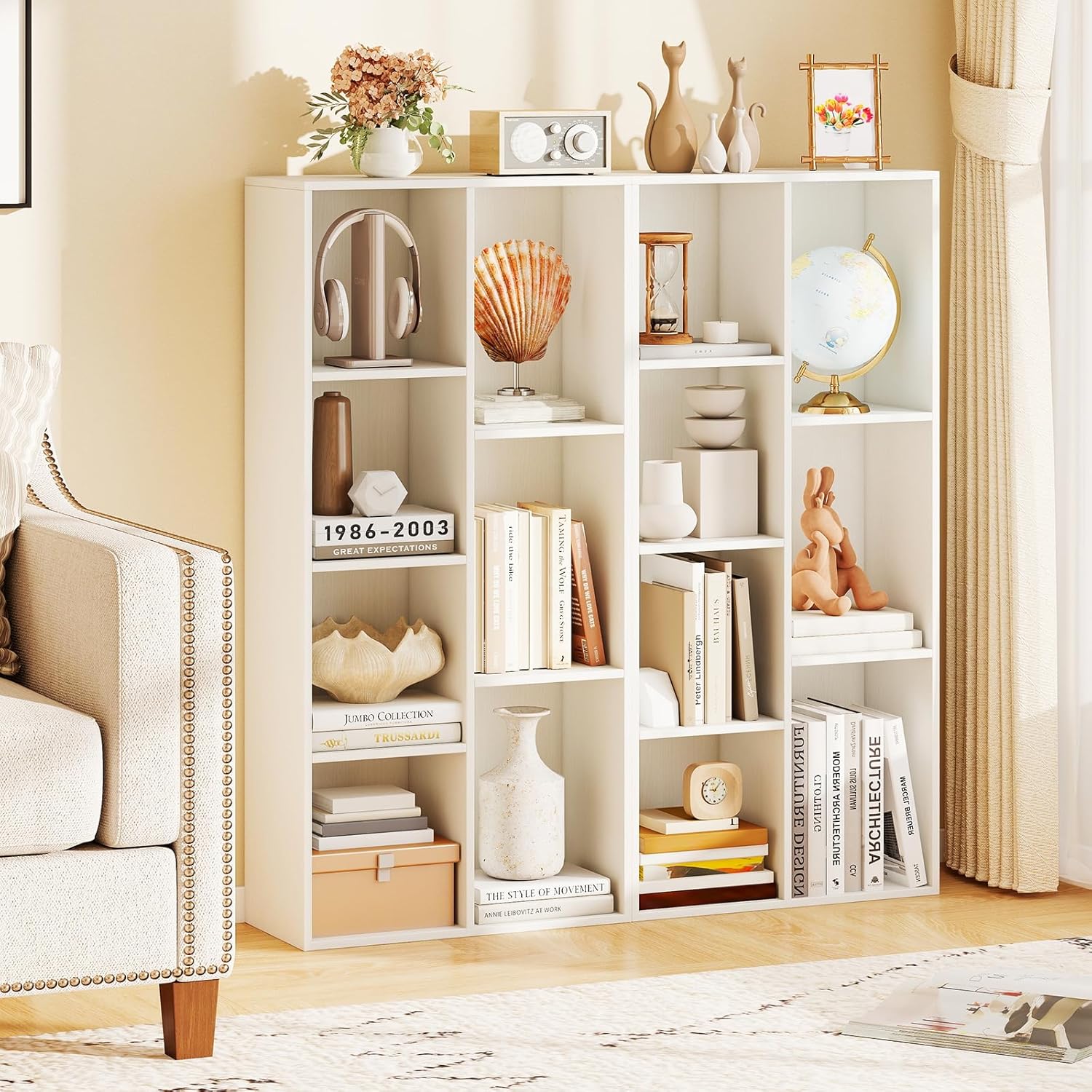 Featuring 7 open compartments, this freestanding storage organizer provides ample space to display books, decorative items, or everyday essentials, helping to keep your area neat and organized. It can be positioned vertically or horizontally, making it easy to fit into various spaces such as the living room, bedroom, study, or home office. Constructed with attention to detail, this bookcase includes 2 anti-toppling devices to improve stability and safety. The anti-slip foot pads help maintain stability on different floor surfaces while protecting your floors from scratches.