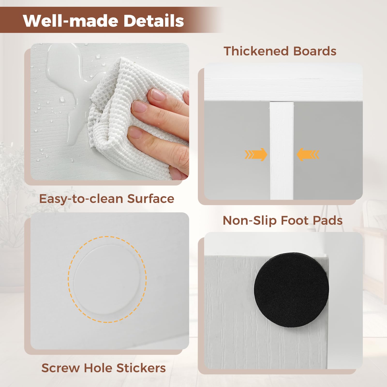Non-slip foot pads prevent unwanted movement and scratches