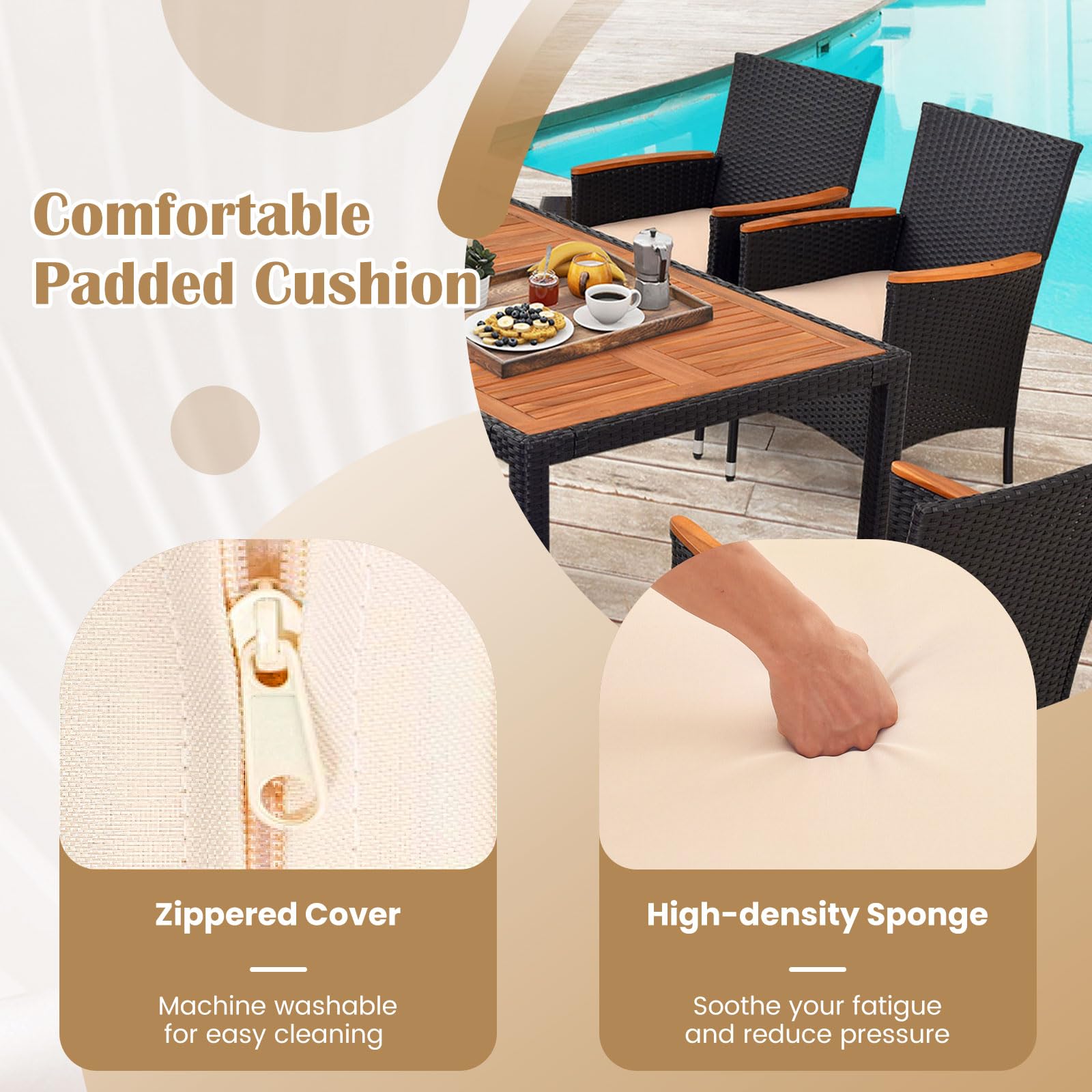 - Comfy Chairs with Cushion: Each dining chair features slightly inclined backrest and armrests, ensuring an immersive and relaxing experience. Besides, the included seat cushions are crafted from waterproof non-woven fabric and thick sponge, providing ultimate comfort without compromising on style.