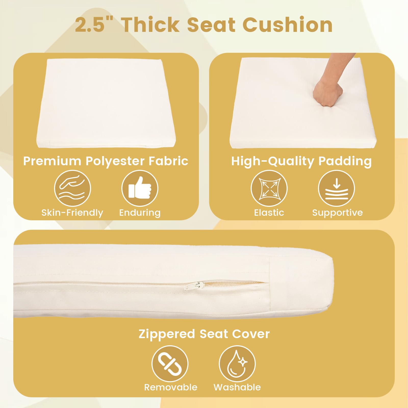 Removable thick seat cushion reduces strain on your hip and ensures all season comfort