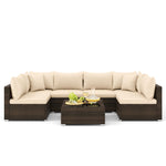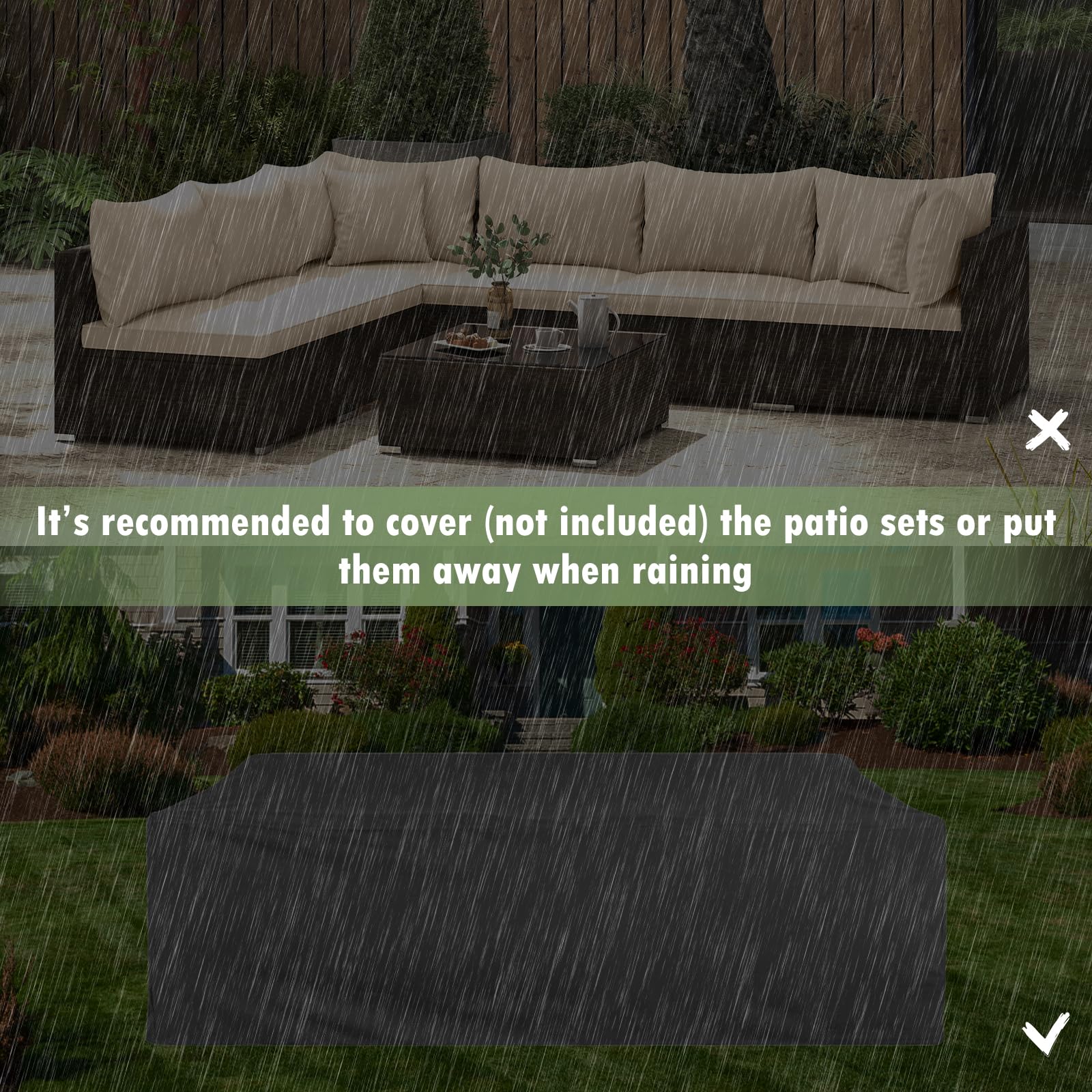 - Selected Materials: Made of weather-resistant PE rattan, rust-proof steel frame, waterproof cushion covers and high-quality tempered glass, this 7 pieces sofa set withstands different weather conditions for long-term use. Plus, the removable covers are easy to clean.