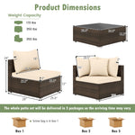 Brighten up your outdoor space with this 7-piece rattan patio furniture set! This outdoor patio furniture set with soft cushions and ergonomic backrests not only allows you to sit very comfortably but also use it to host your neighbors or friends. After a long period of use, all waterproof covers can be removed for easy cleaning. Considering its durability, this outdoor sofa set is made of weather-resistant PE rattan, stainless steel frame and high quality tempered glass, which is perfect for outdoor use, such as yard, pool, and garden. In addition, this patio set can be combined into different configurations according to your various demands.